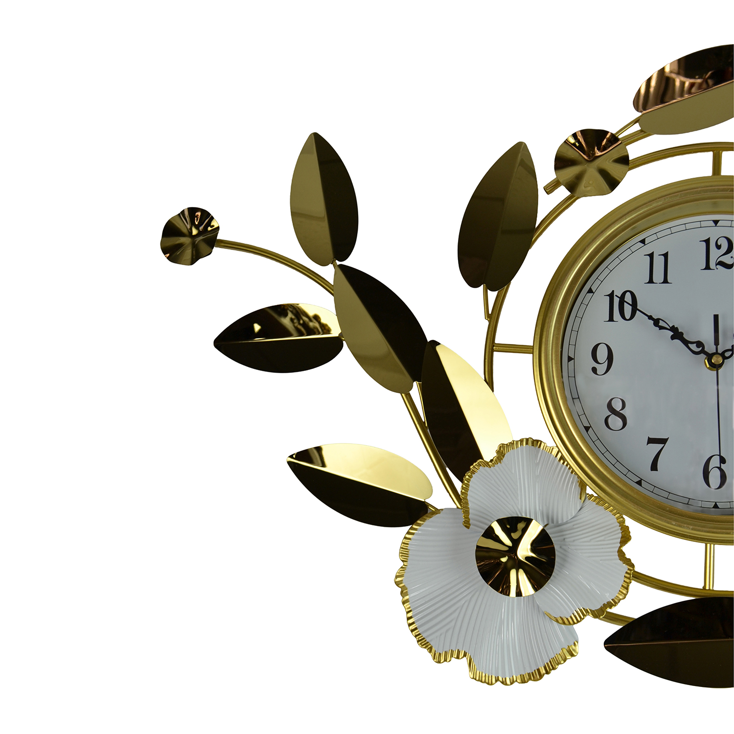 40X19 GOLD & WHT FLORAL WALL CLOCK