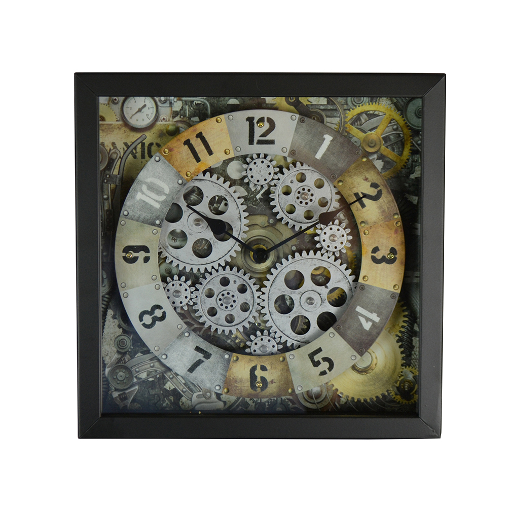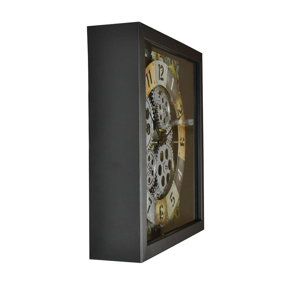 Black Moving Gears Metal Table Clock Pocket Style Roman Numerals Battery Operated