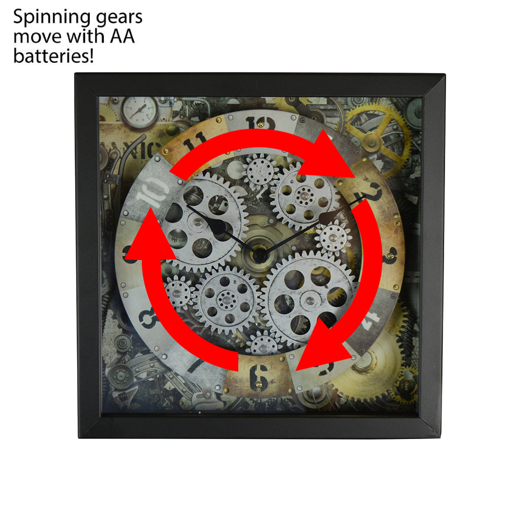 Moving Gears Antique Gold Steampunk Style Metal Wall Clock w/Roman Numerals