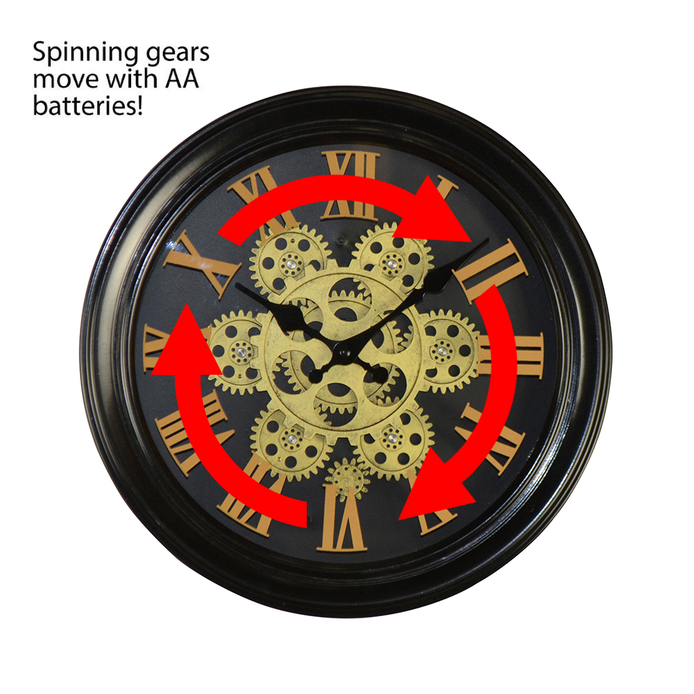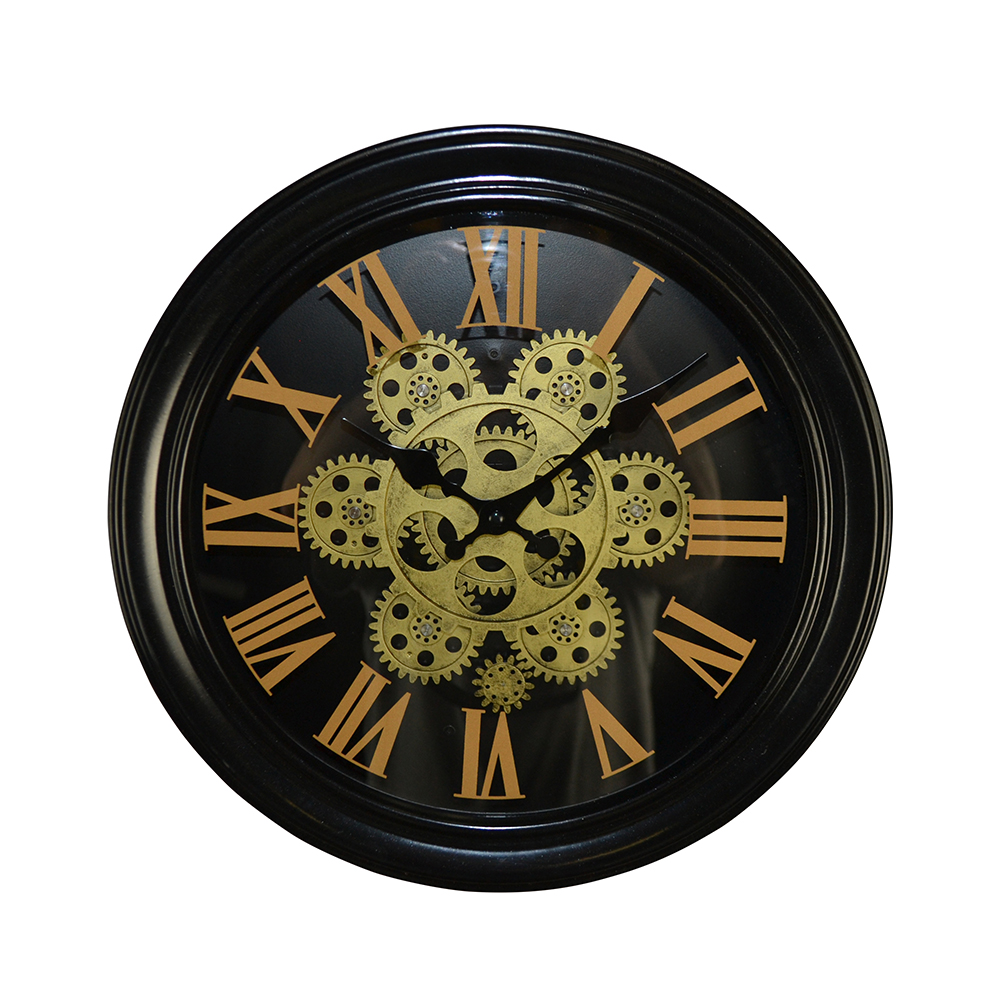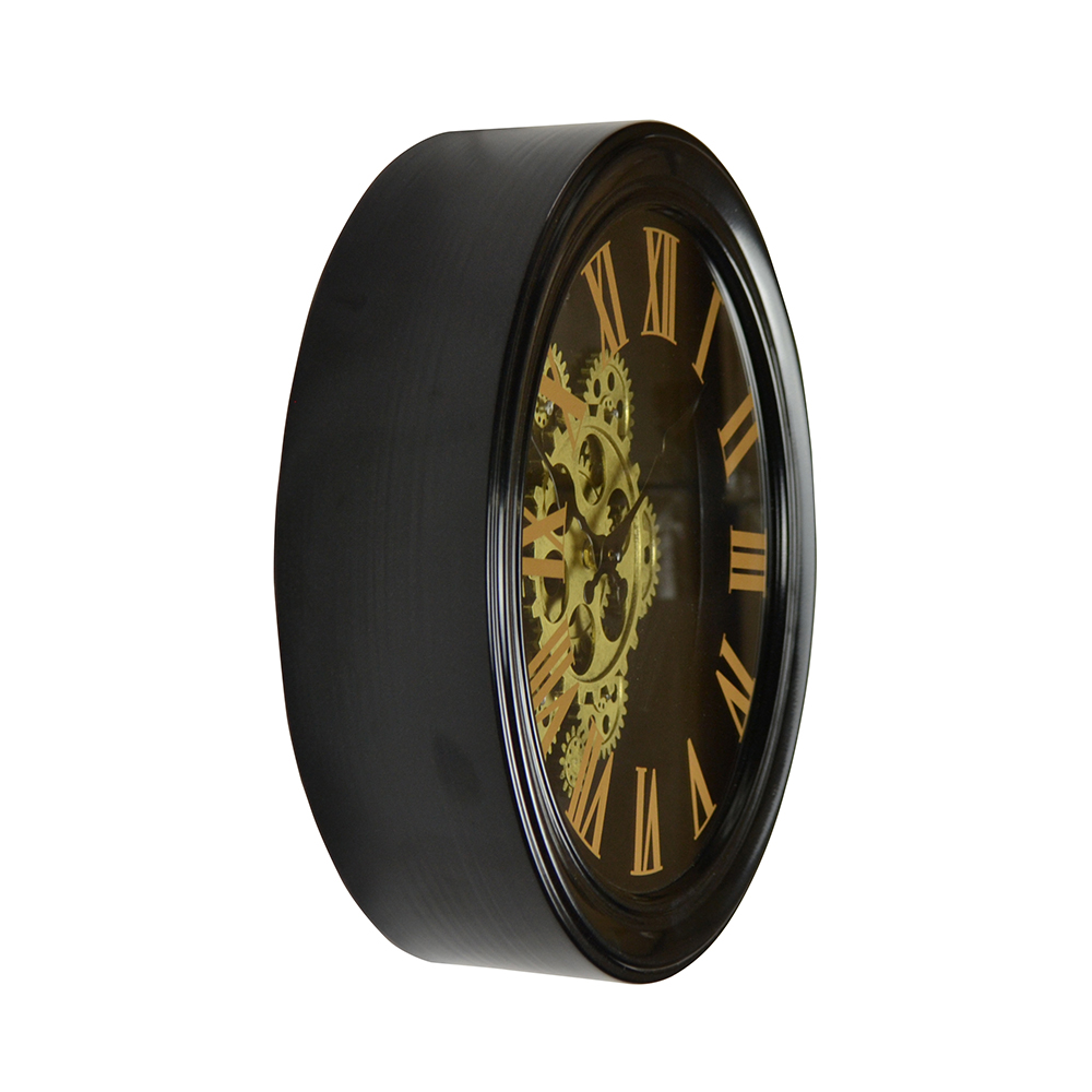 13″ ROUND BLK WALL CLOCK W/ GEARS