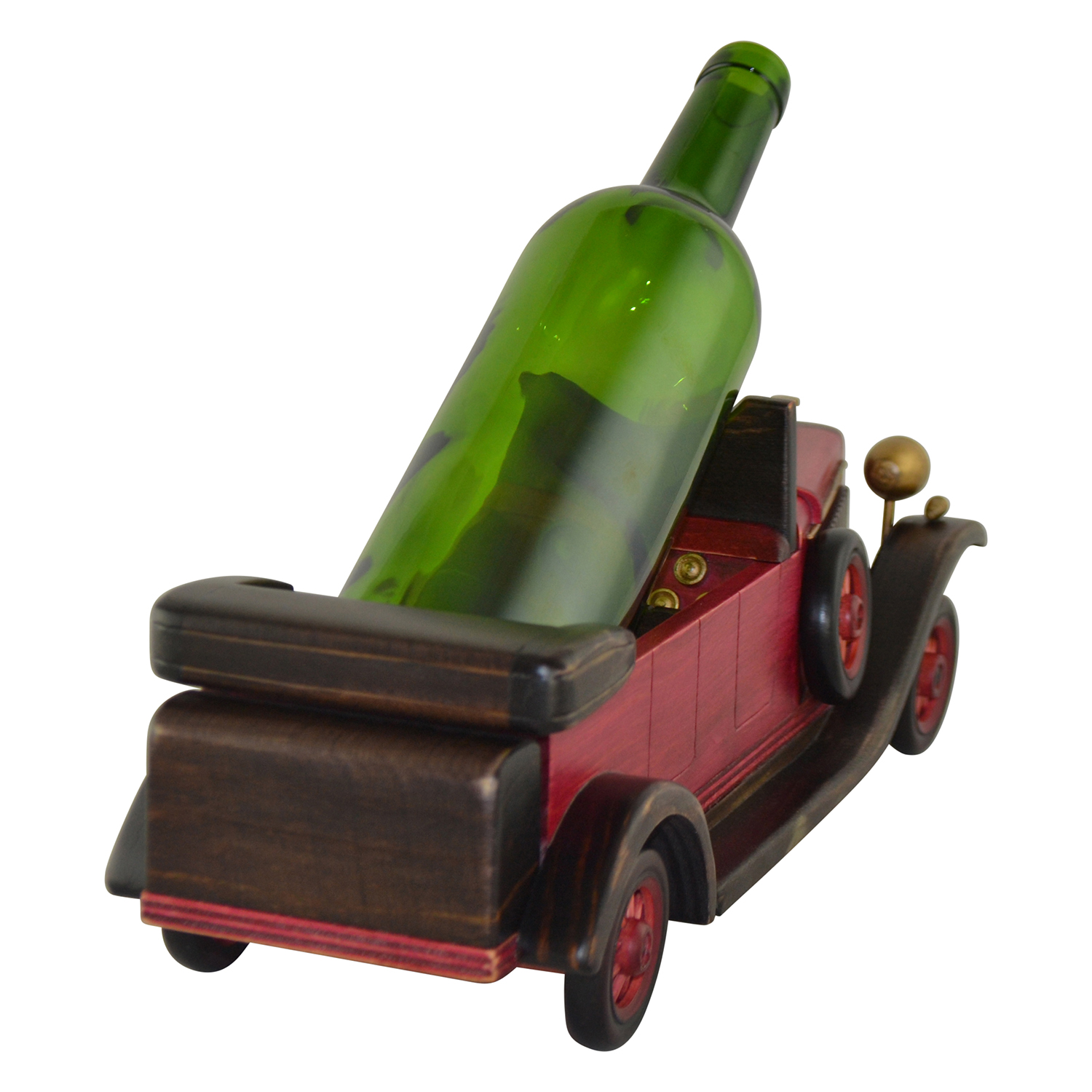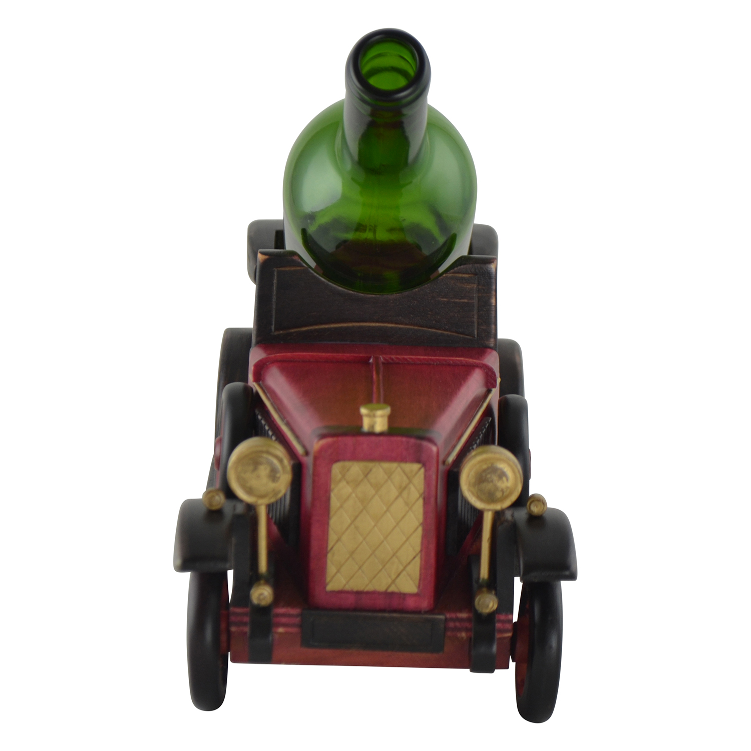 14X9.5X4 BROWN WOODEN DOUBLE WINE BOTTLE HOLDER W/ ACCESSORIES