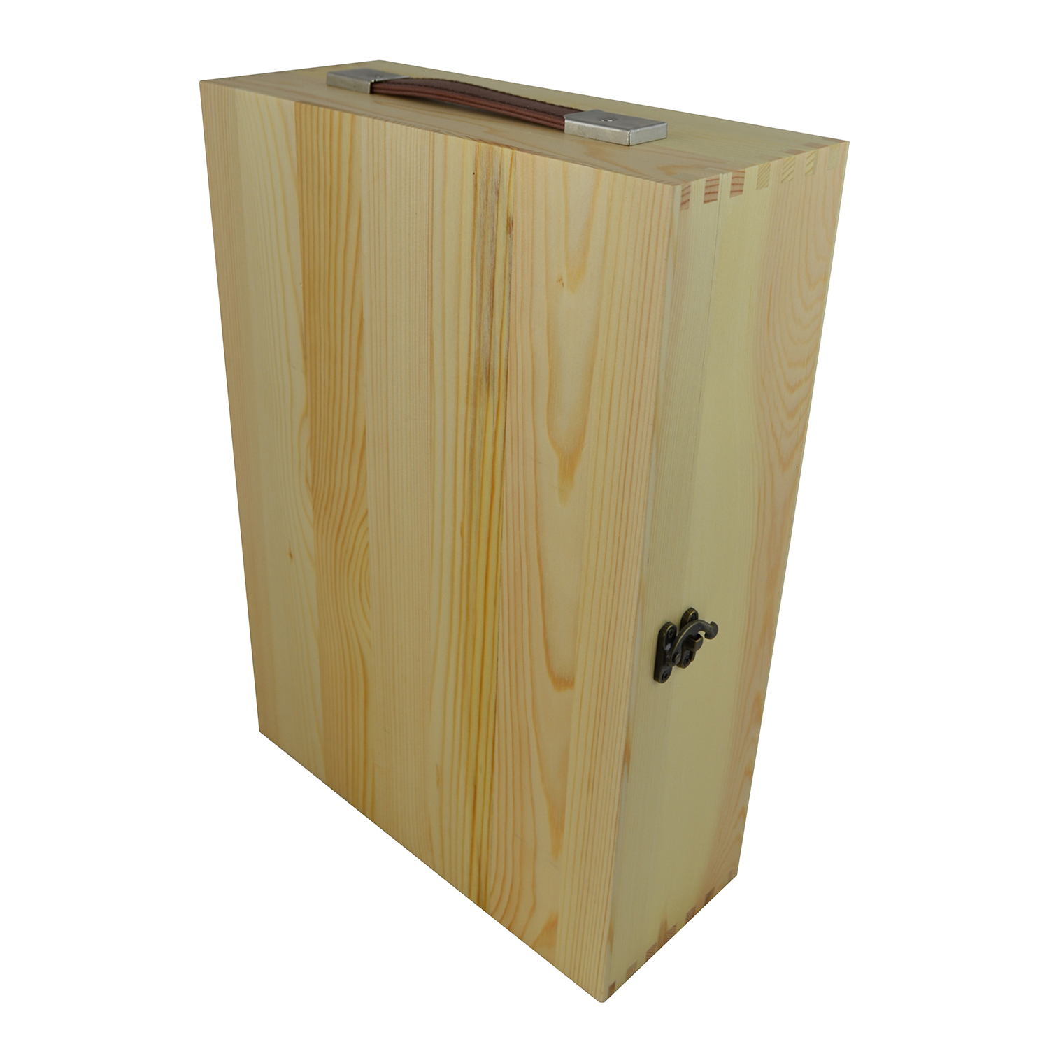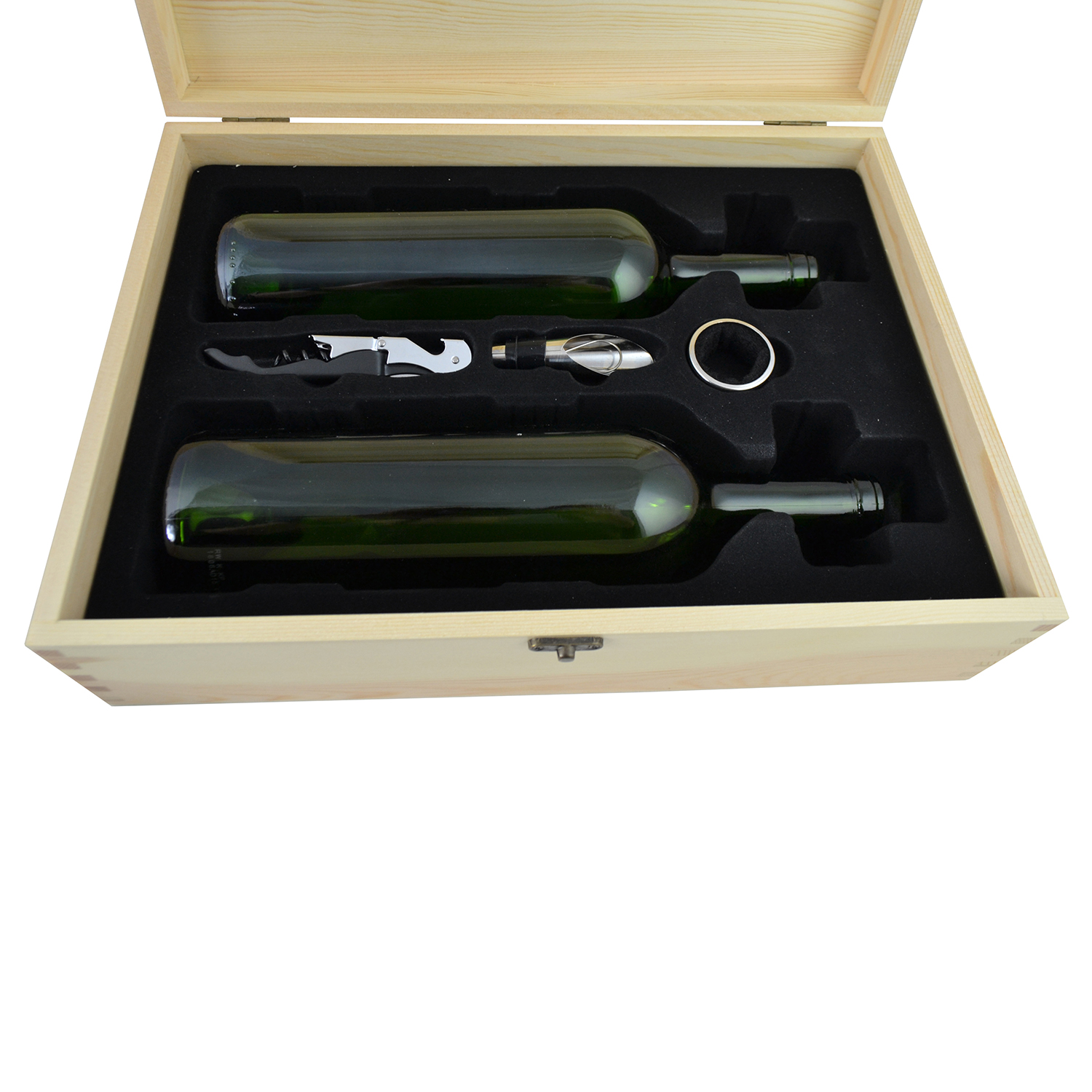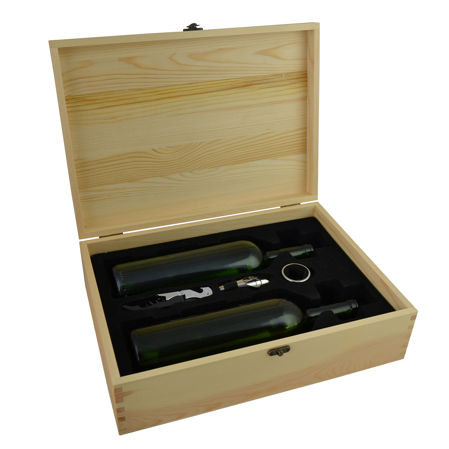 14X5X4.5 NATURAL COLOR WOODEN WINE BOX W/ ACCESSORIES