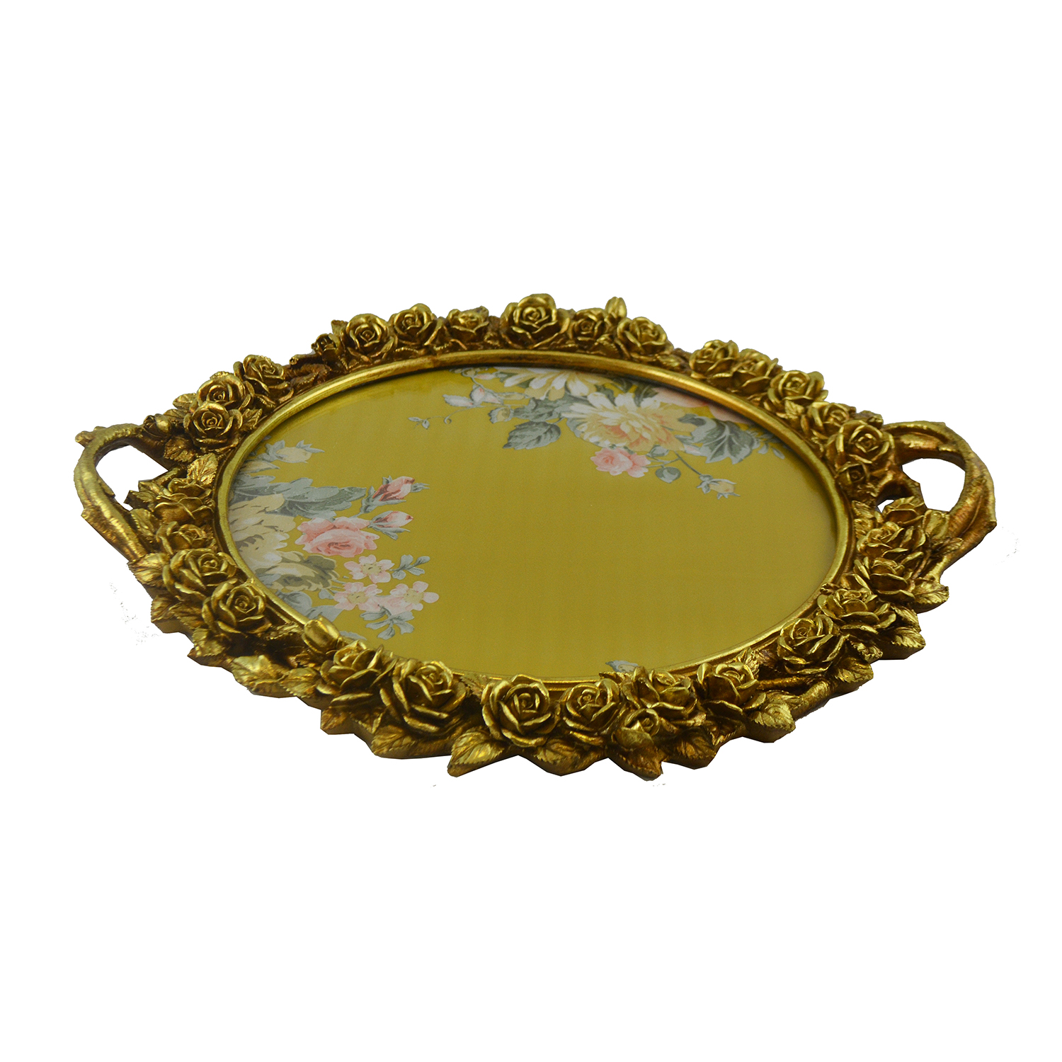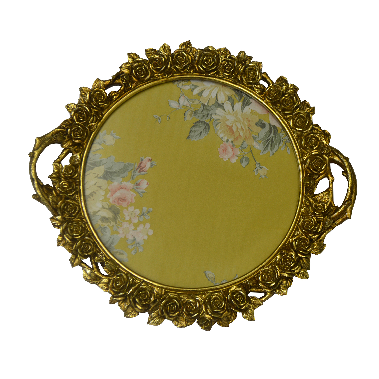 17″ ROUND GOLD TRAY W/ HANDLES