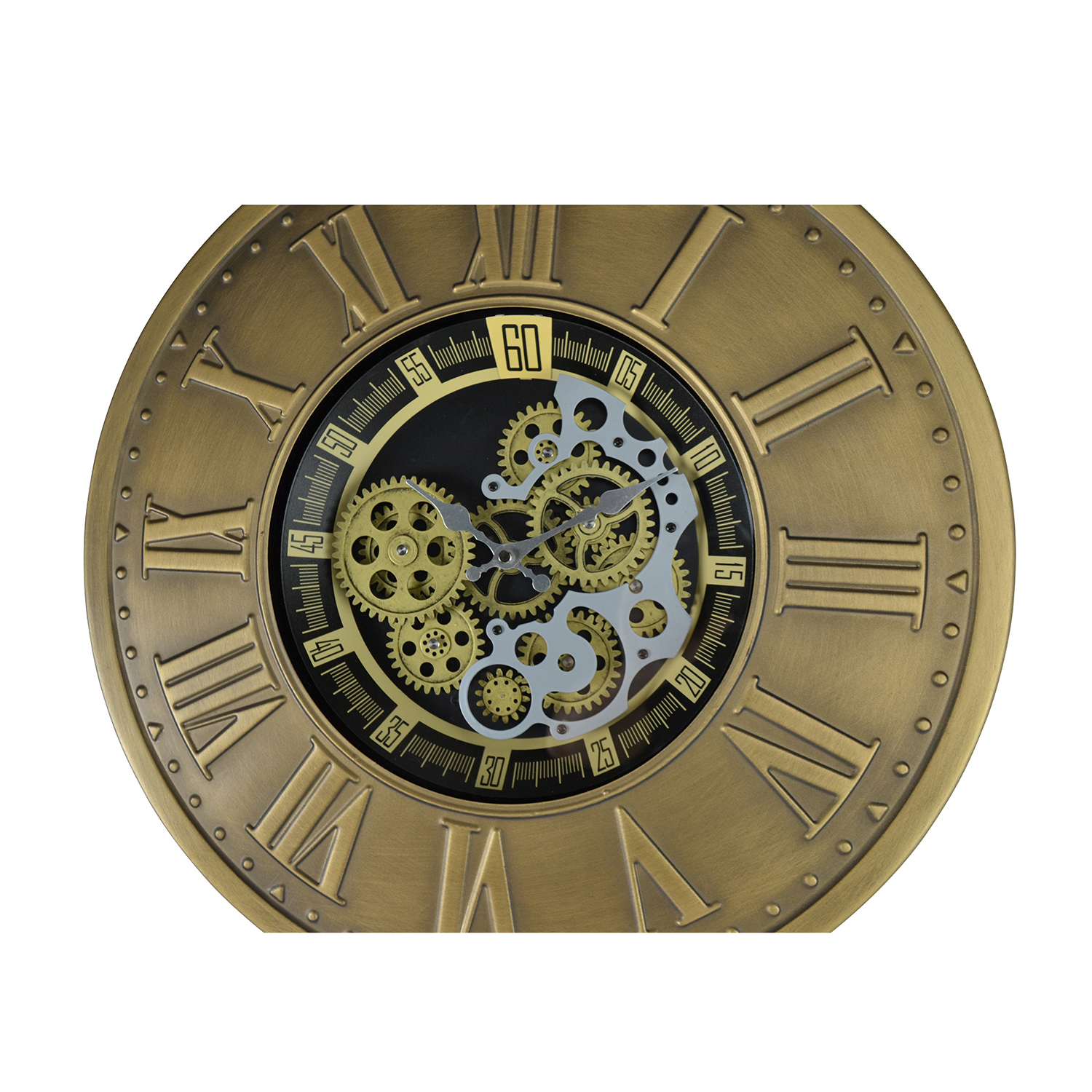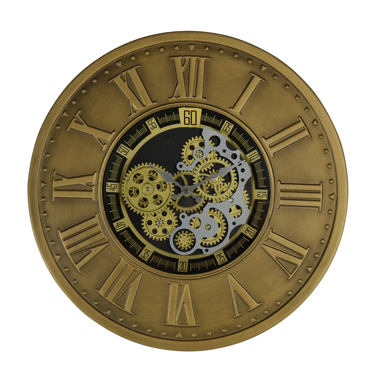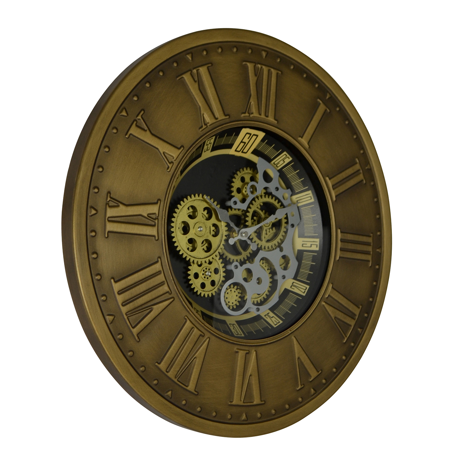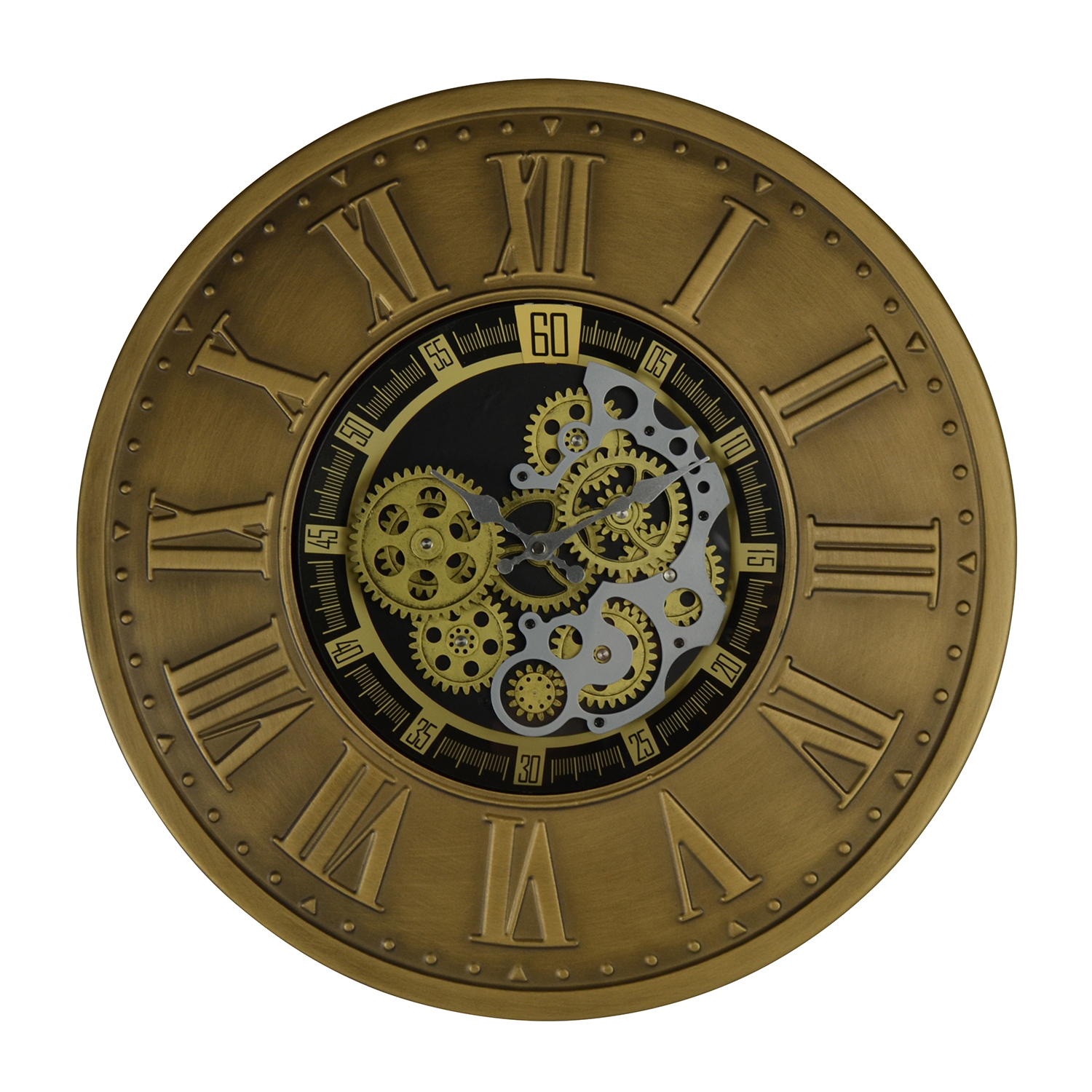 Antique Gold & Mirror Metal Wall Clock w/Moving Gears & Roman Numerals, Battery Operated Vintage Wall Clock for Home Or Office Wall Decor