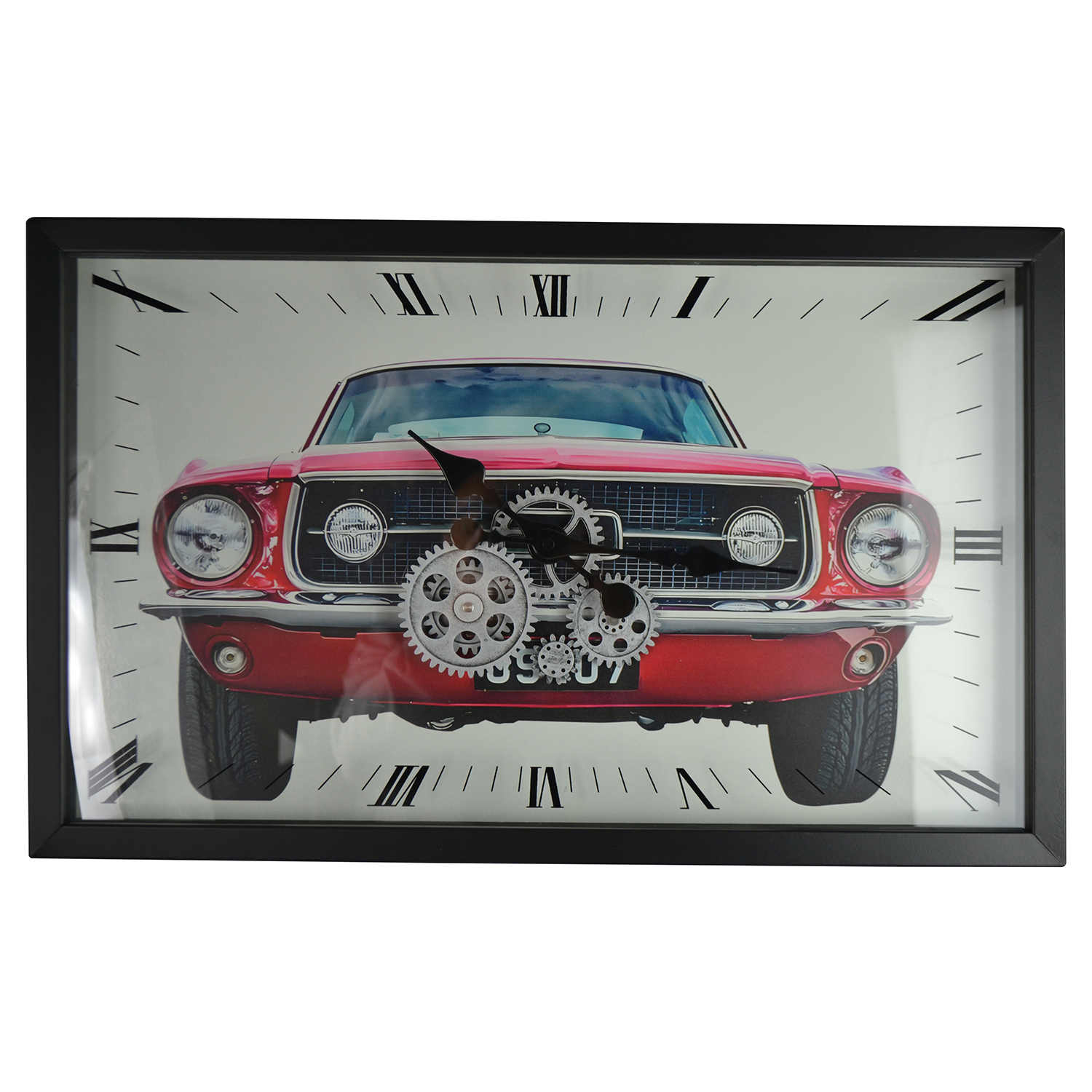 22.5X14 RED MUSTANG STYLE CAR WALL CLOCK