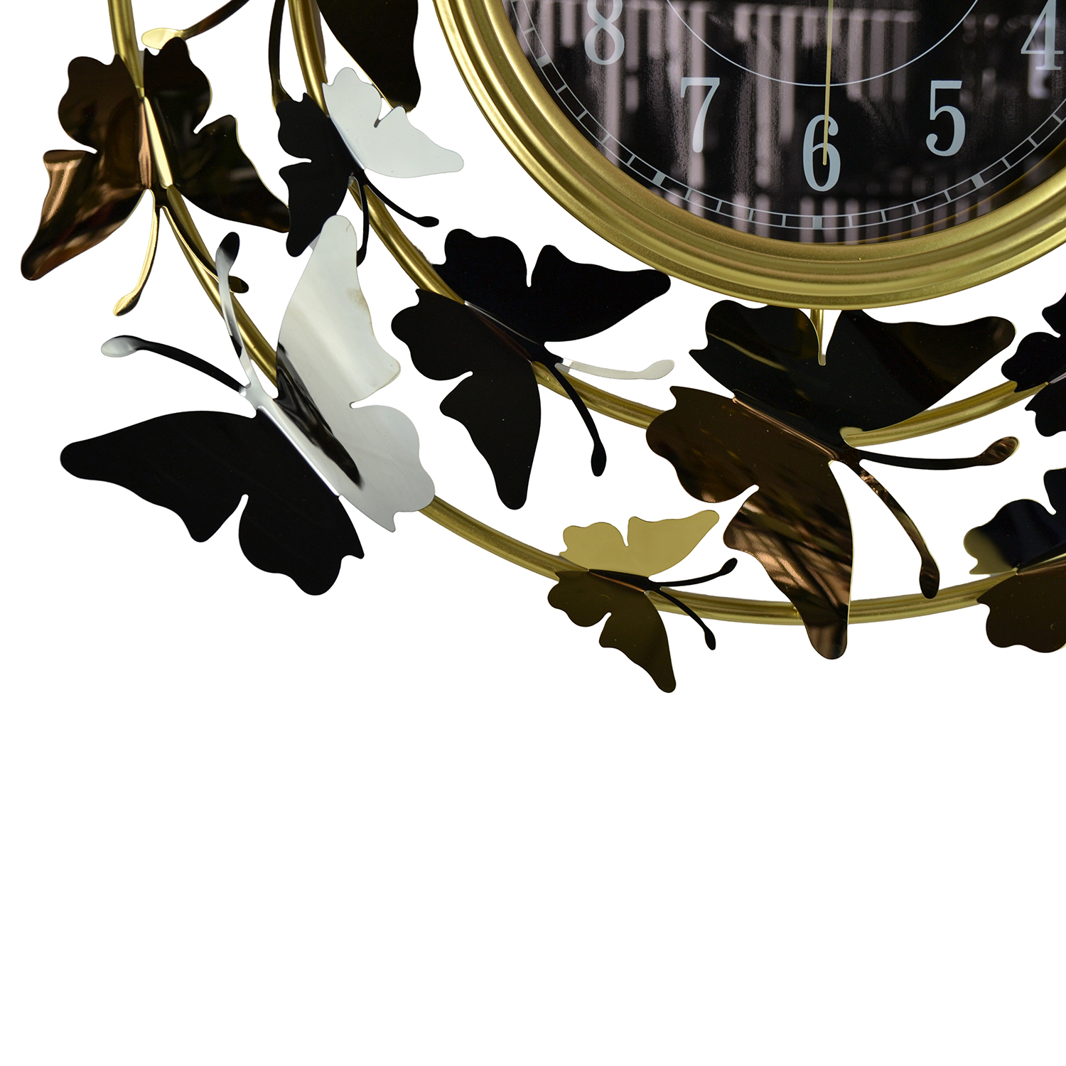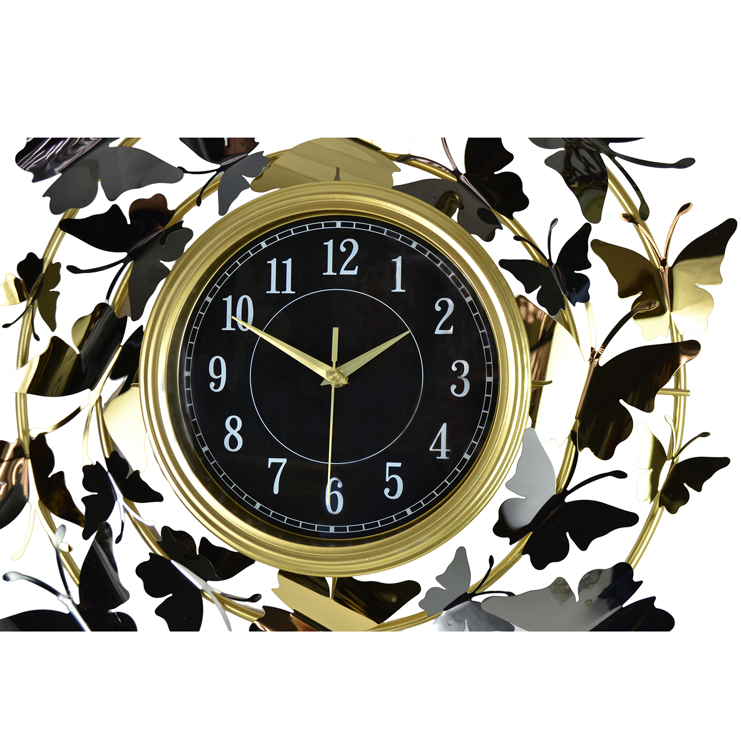 22" ROUND GOLD & CHROME BUTTERFLY WALL CLOCK quantity