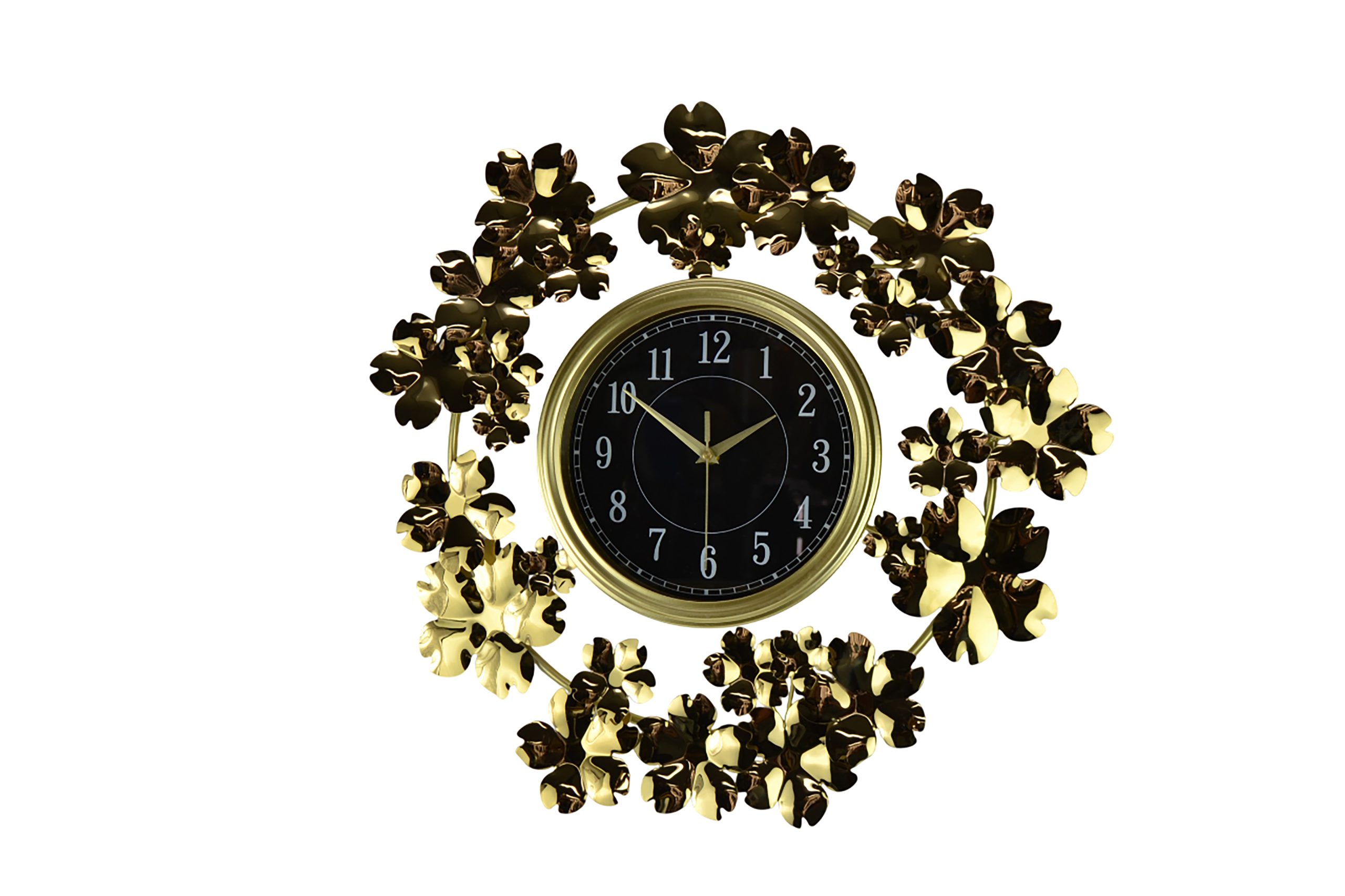 22″ ROUND GOLD FLOWERS WALL CLOCK