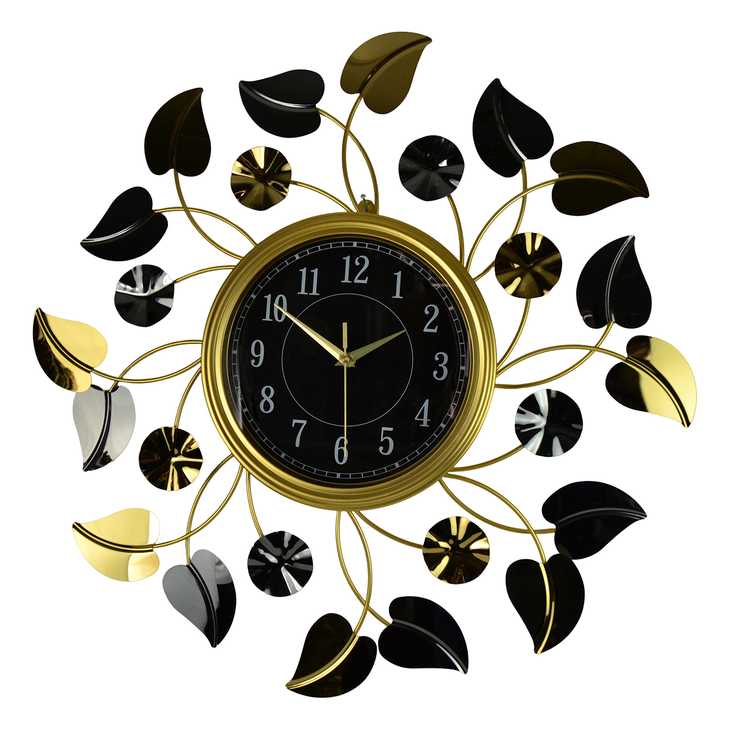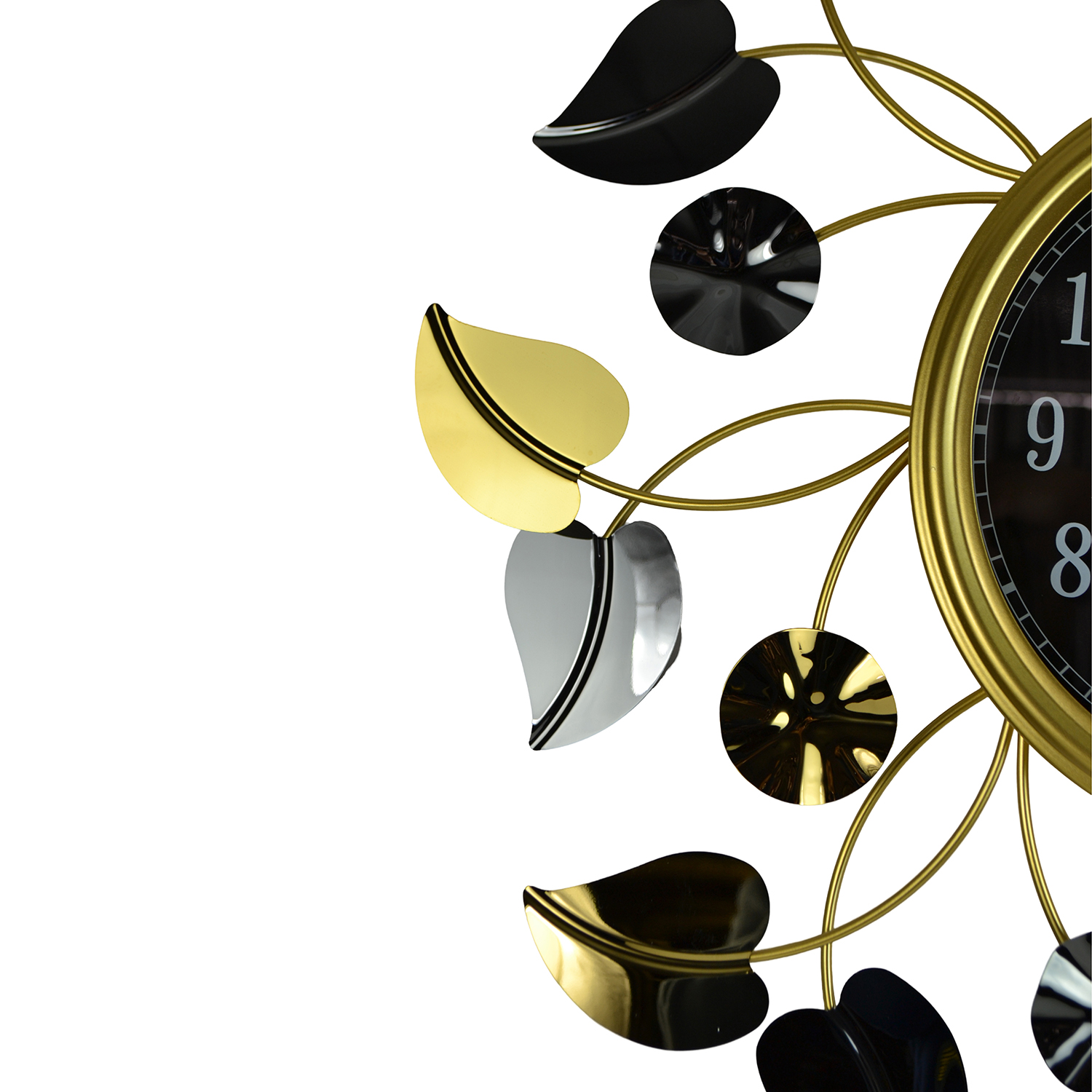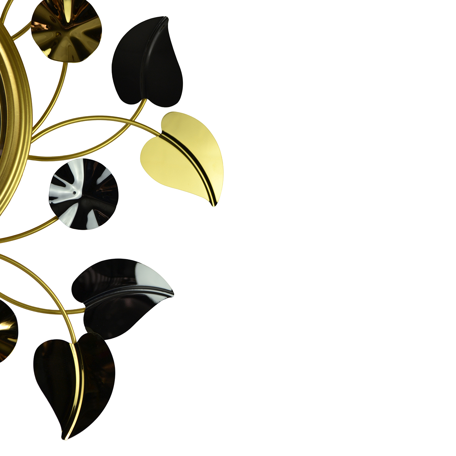 24″ ROUND GOLD & BLK FLORAL WALL CLOCK
