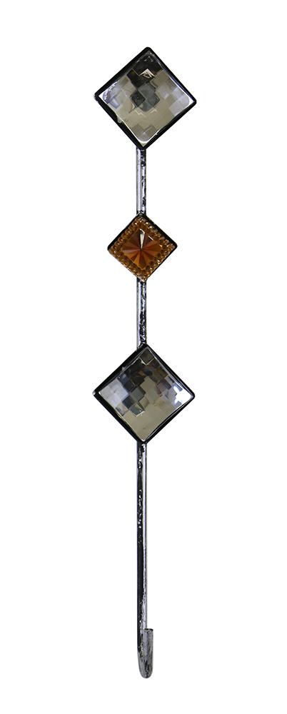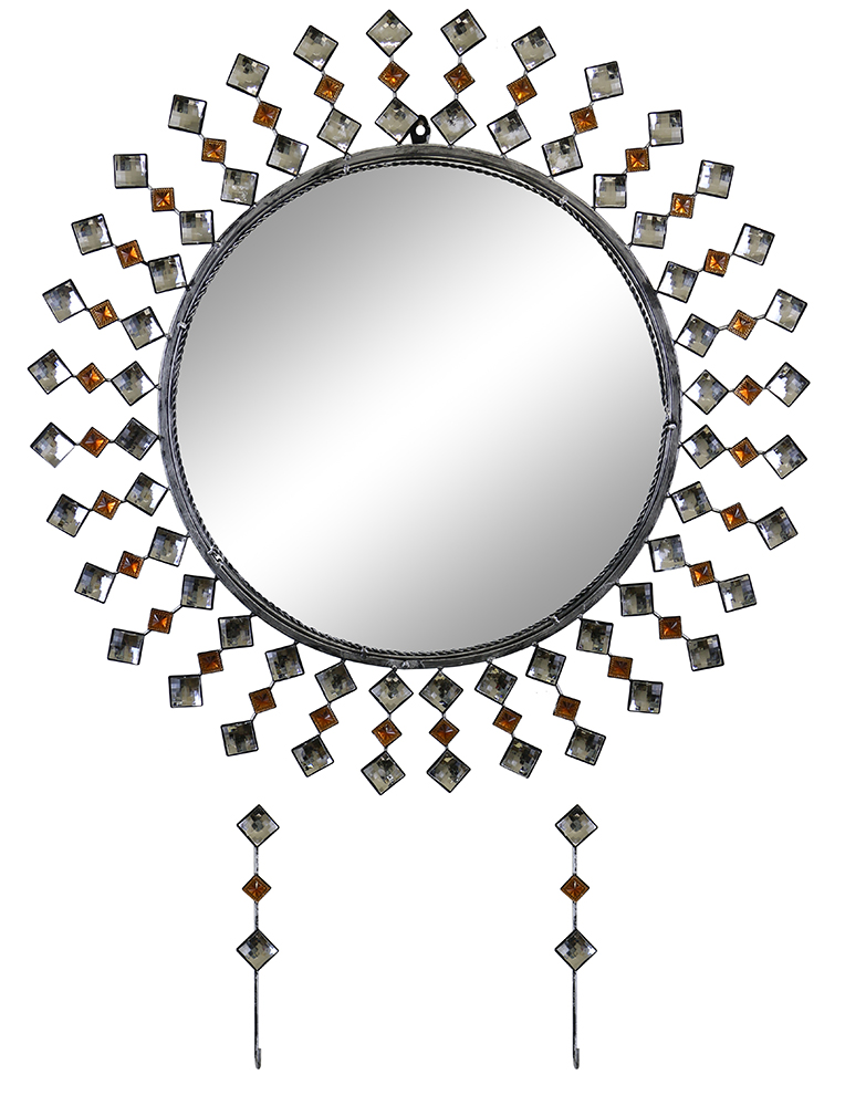 24″ ROUND WALL MIRROR W/ KEY CHAIN HOLDERS, SILVER & COPPER