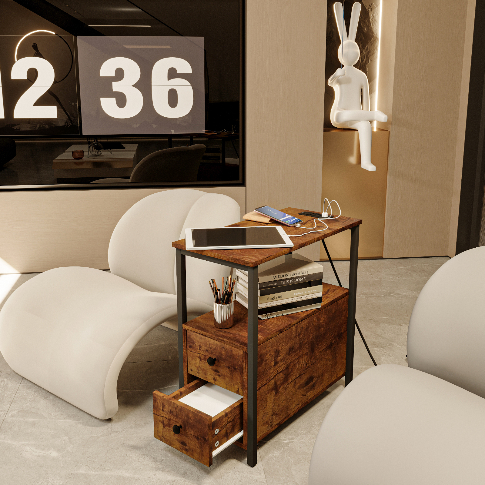 24X12X24 BROWN SIDE TABLE W/ DRAWERS & ELEC. OUTLETS