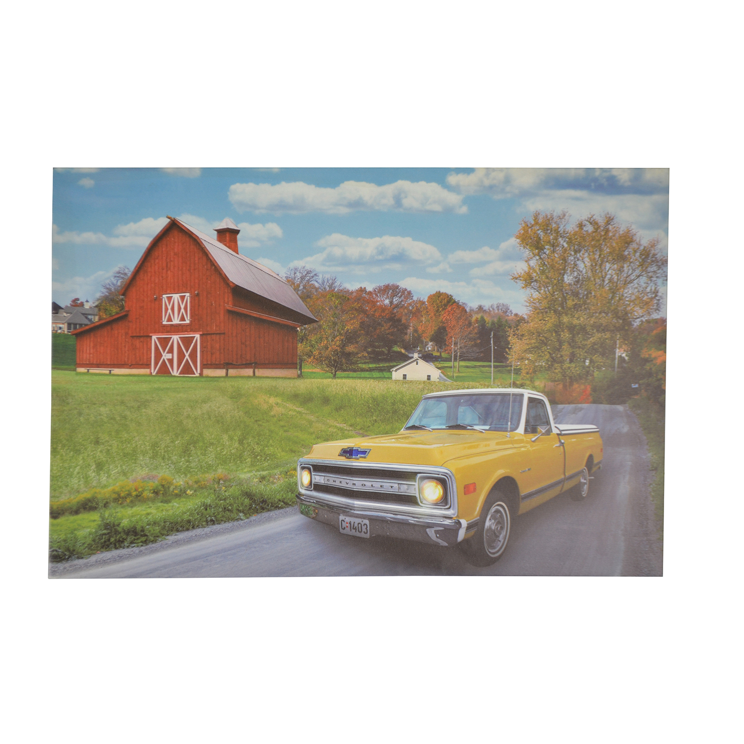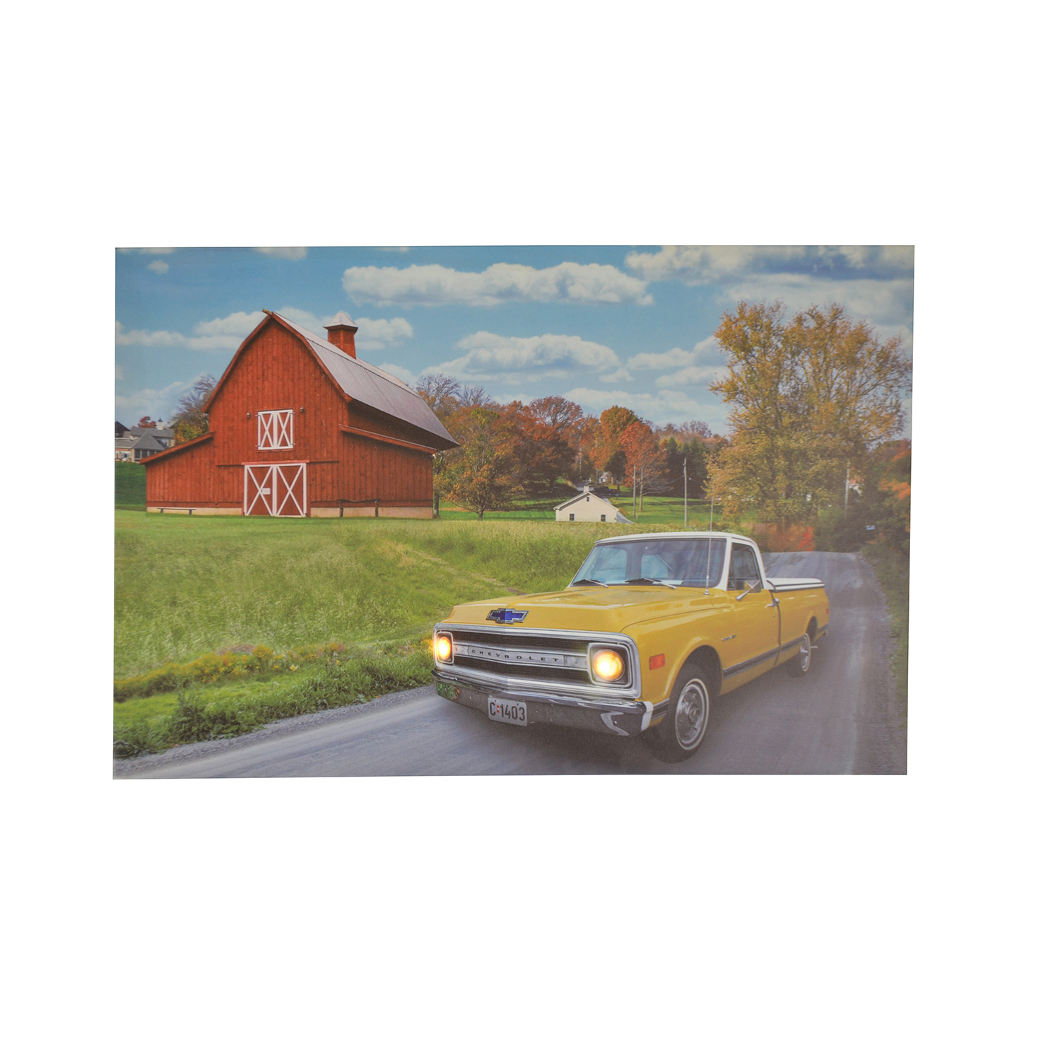 24X16 LIGHT-UP YELLOW CHEVY PICKUP BY BARN