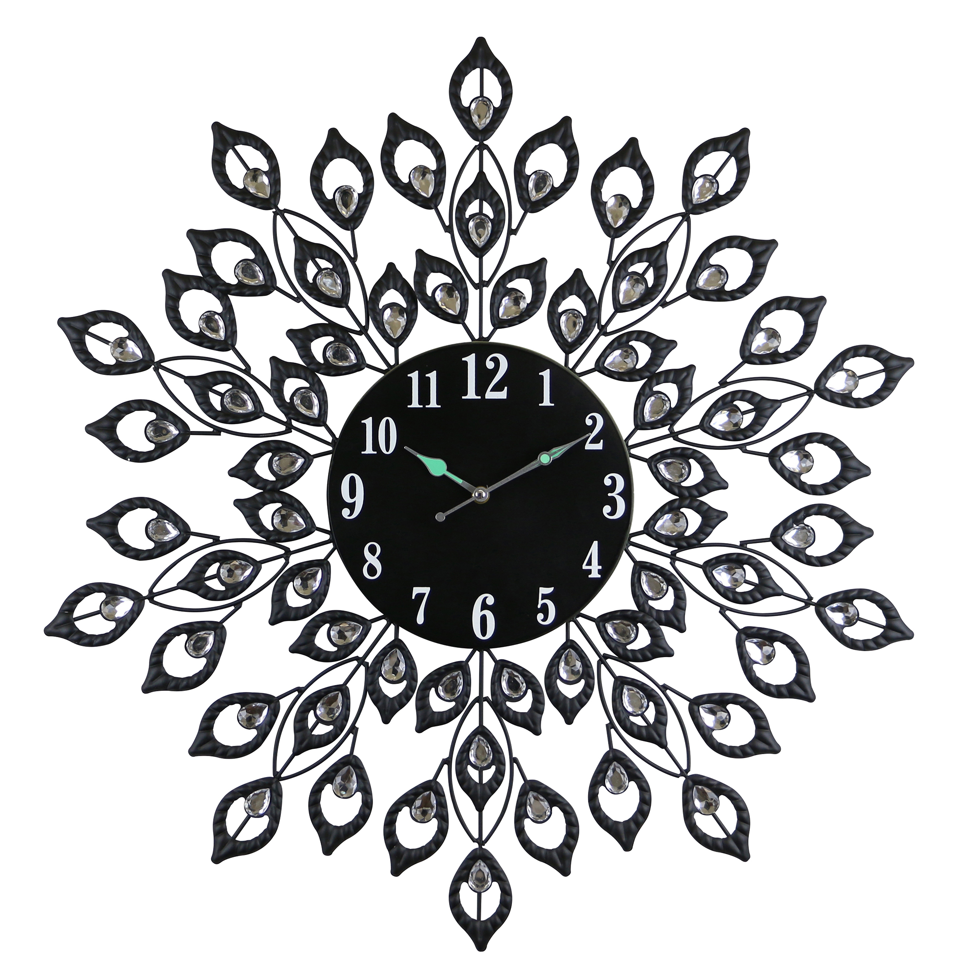 28″ ROUND BLK PEACOCK FEATHER STYLE WALL CLOCK
