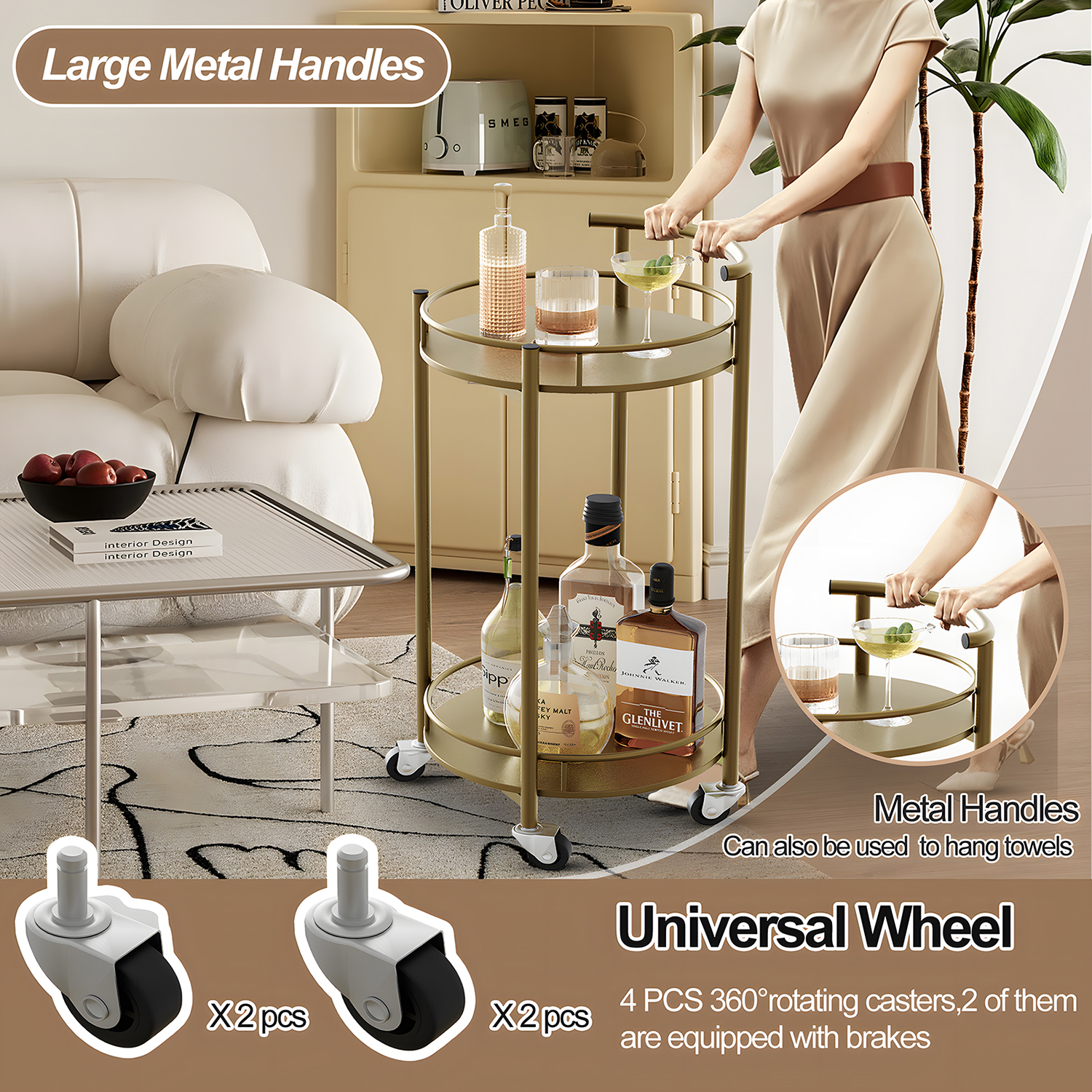 30X15 2 LEVEL GOLD KITCHEN CART