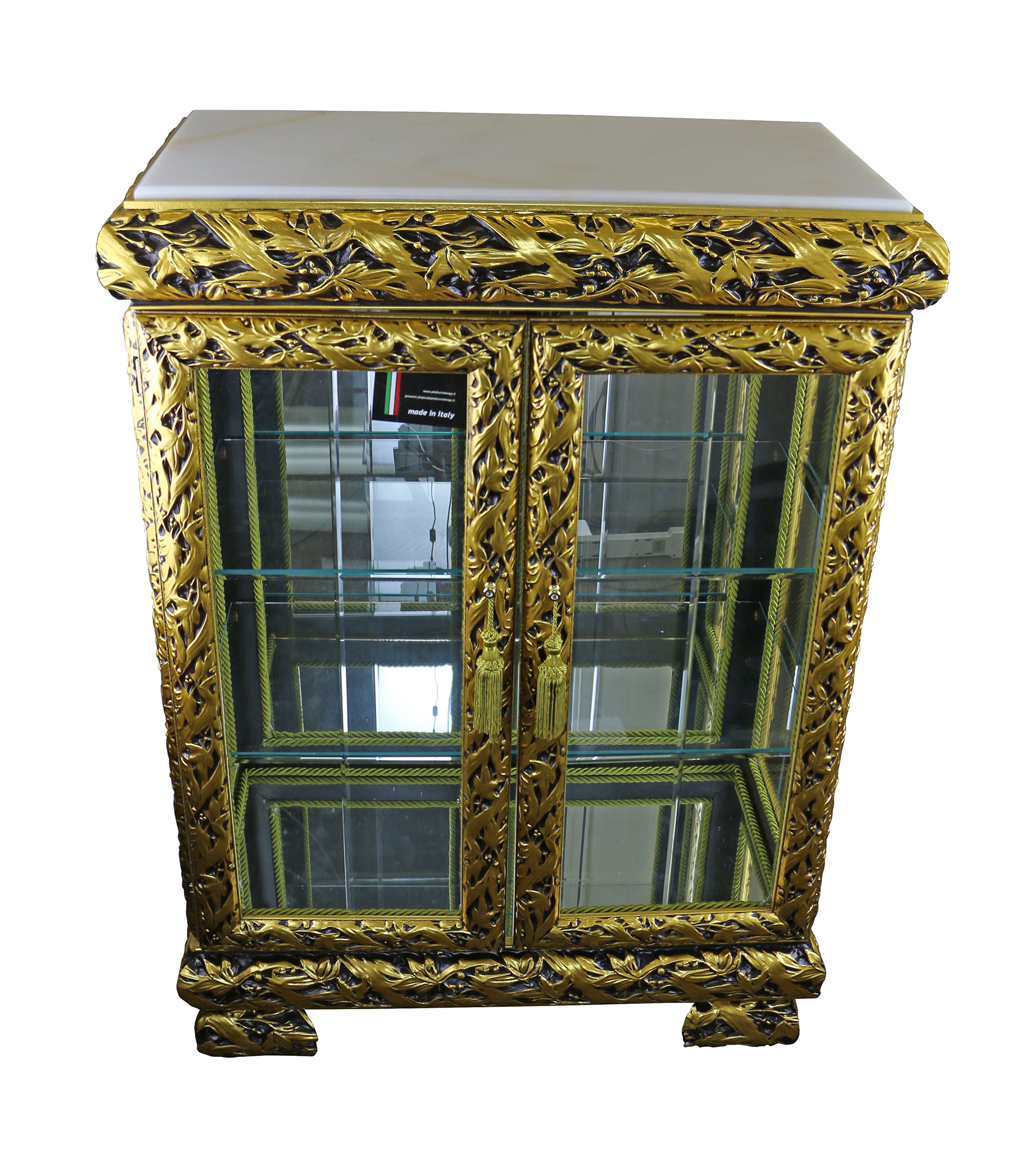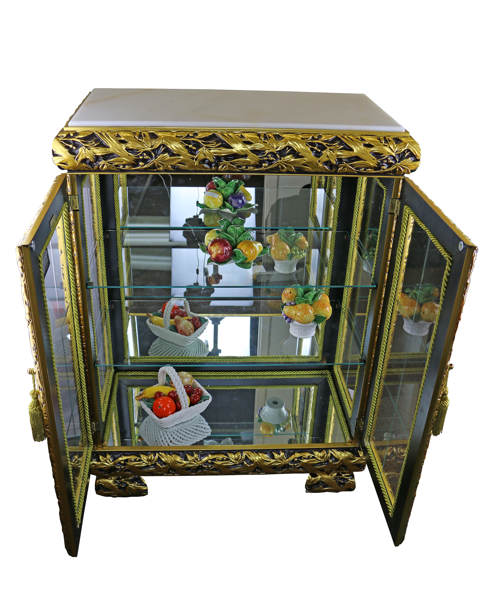 39X28X15 ANTIQUE GOLD DOUBLE DOOR W/ MARBLE