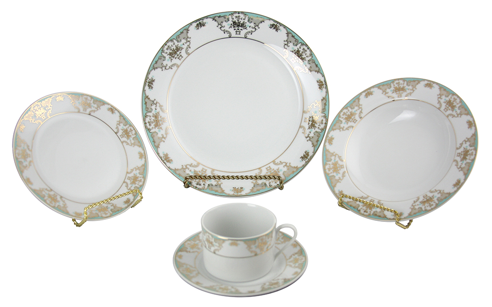 40-PC DINNERWARE SET, TURQUOISE & GOLD quantity