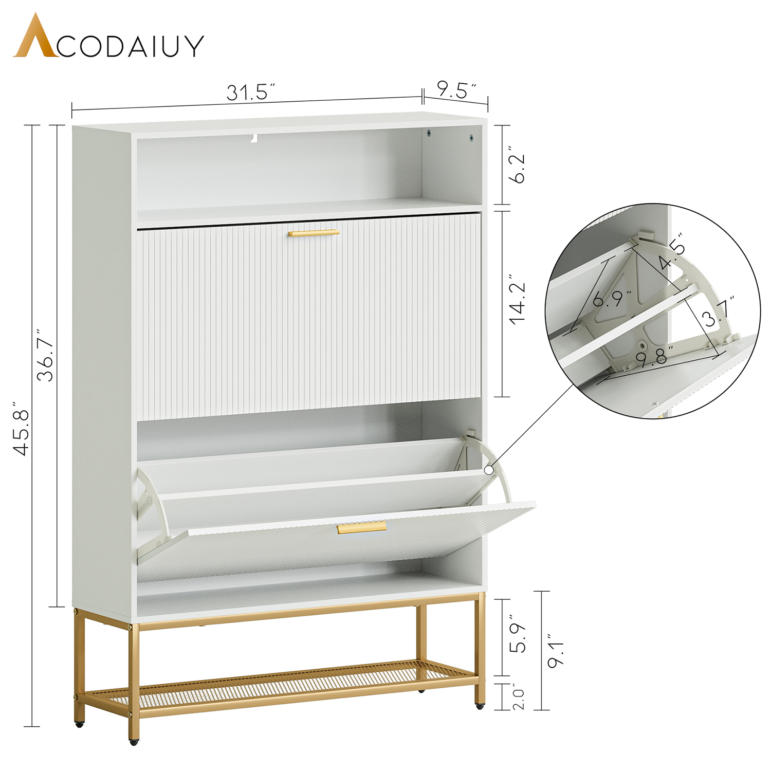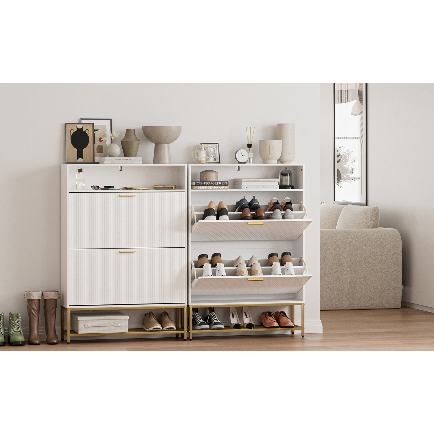 45.5X31.5X9.5 2 DRAWER WHITE SHOE RACK