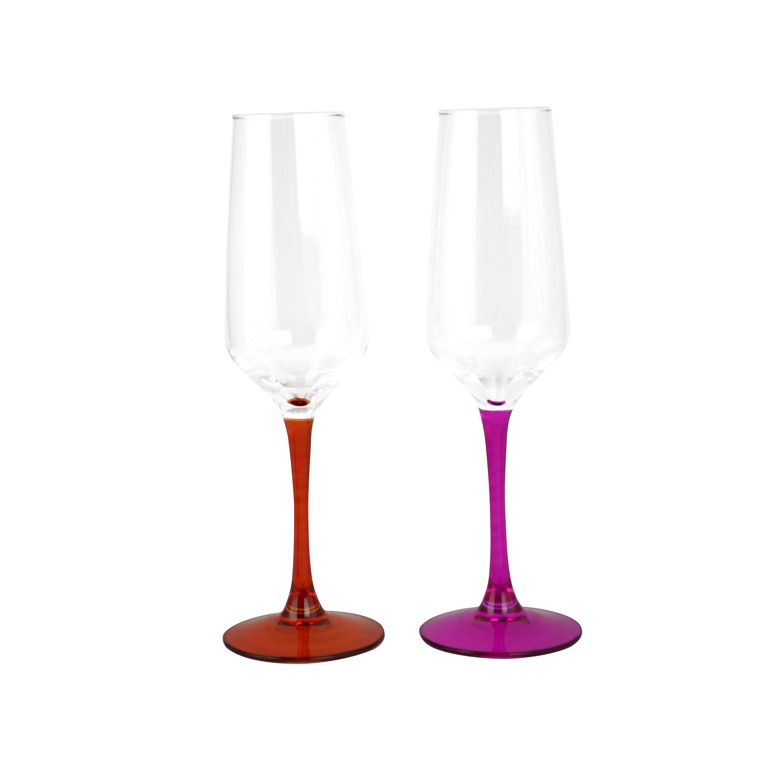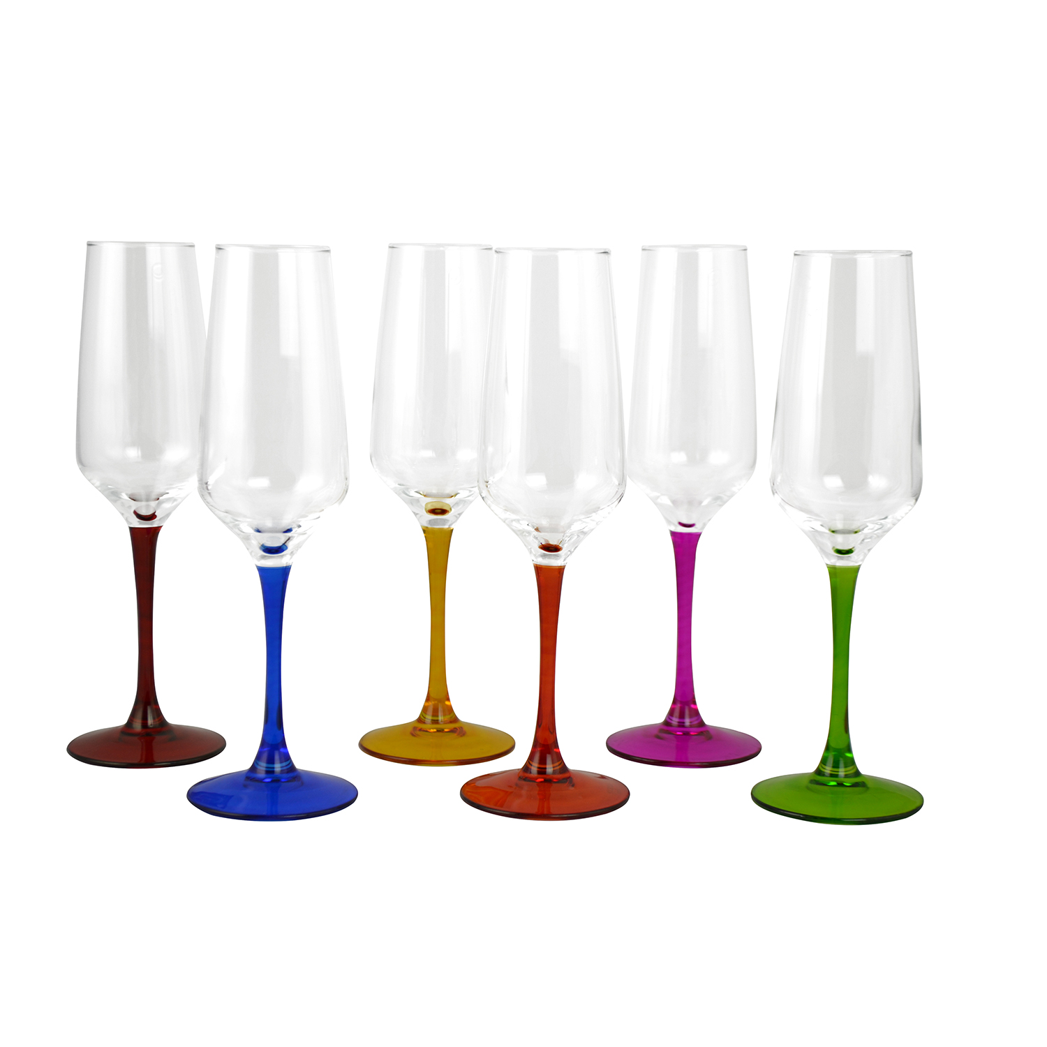 6PC SET OF 8.5″ FLUTE GLASS W/ MULTICOLOR STEM