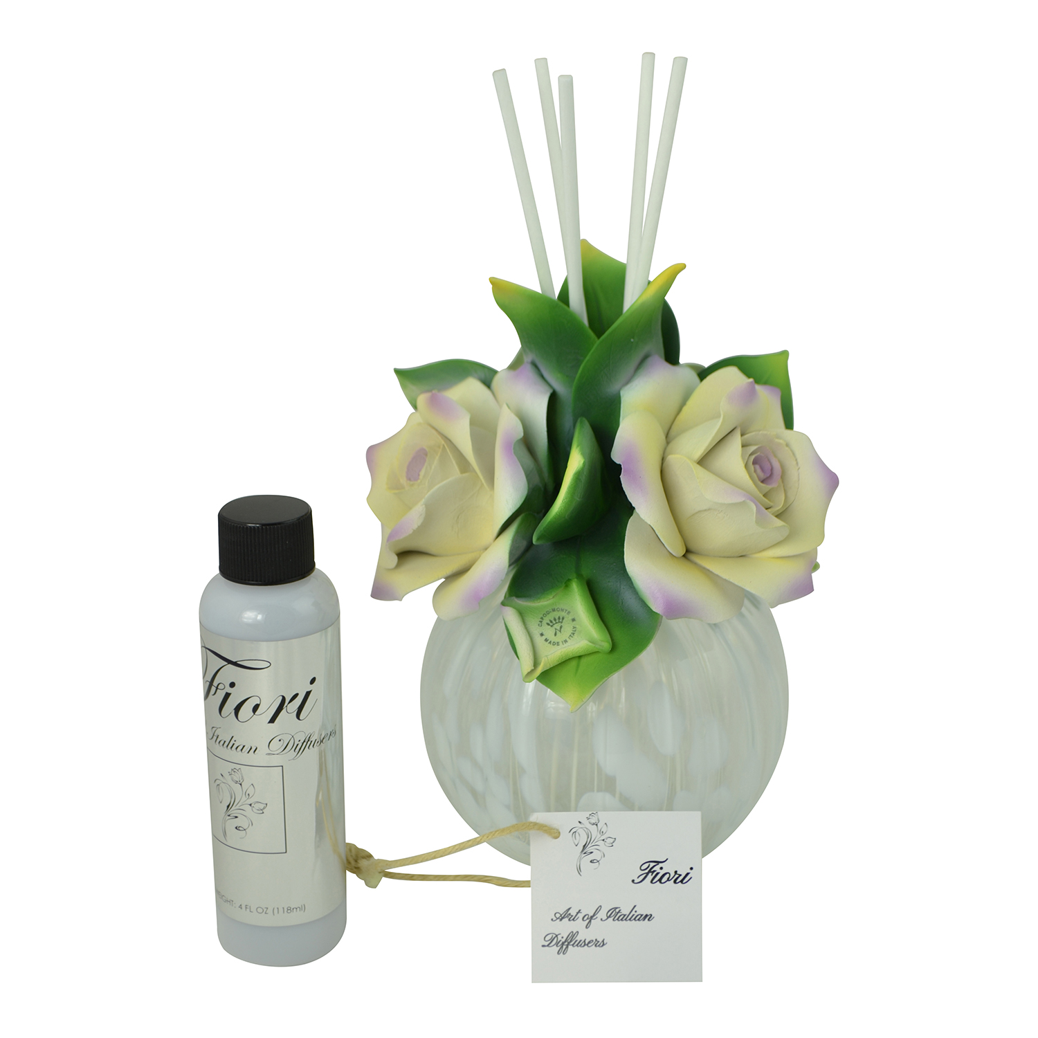8″ DIFFUSER W/ 3 CREAM/PURPLE ROSES