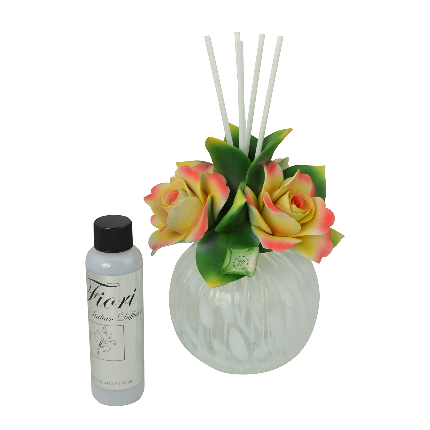 8″ DIFFUSER W/ 3 PASTEL YELLOW/PINK ROSES