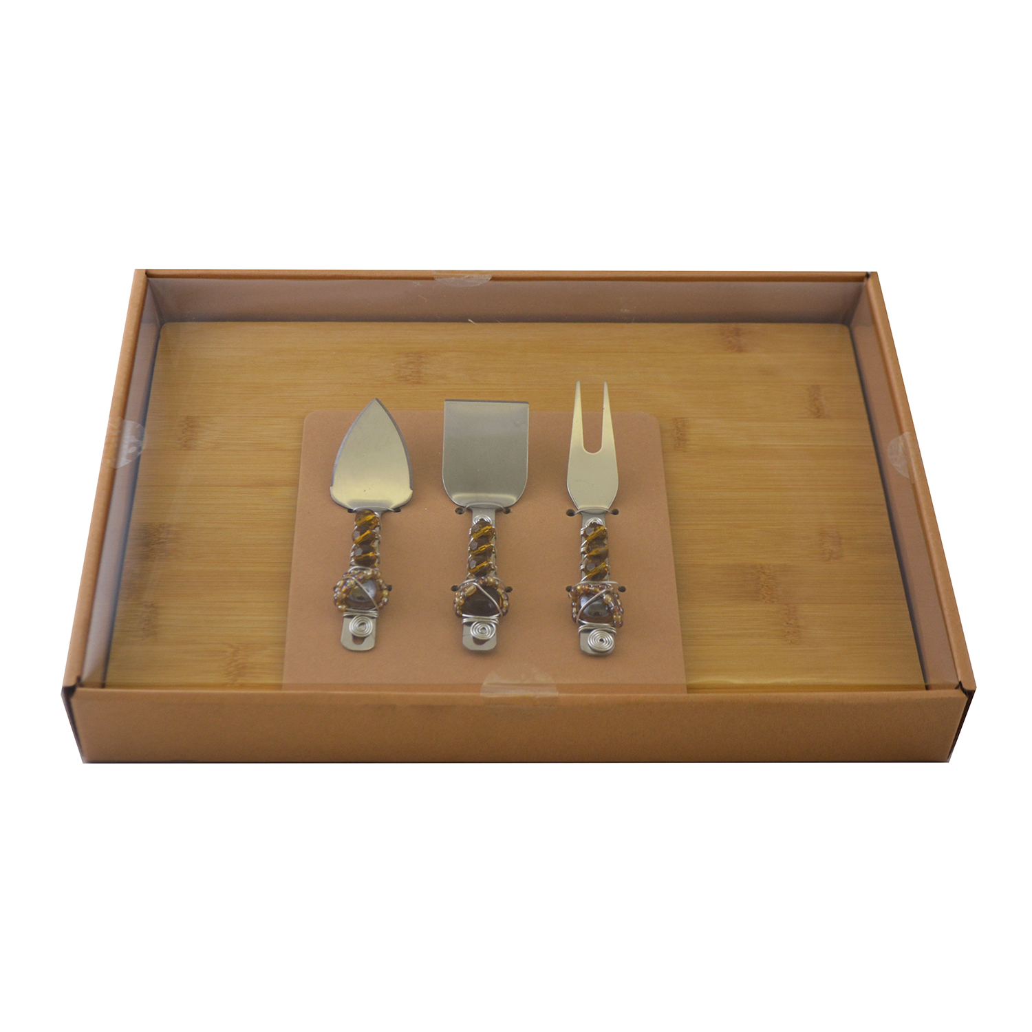 CHEESE BOARD W/ 3PC UTENSIL SET, AMBER STONES