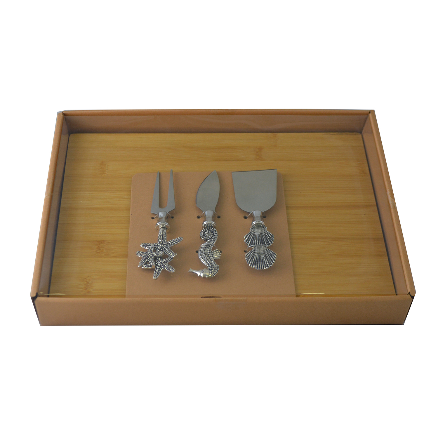 CHEESE BOARD W/ 3PC UTENSIL SET, SILVER NAUTICAL
