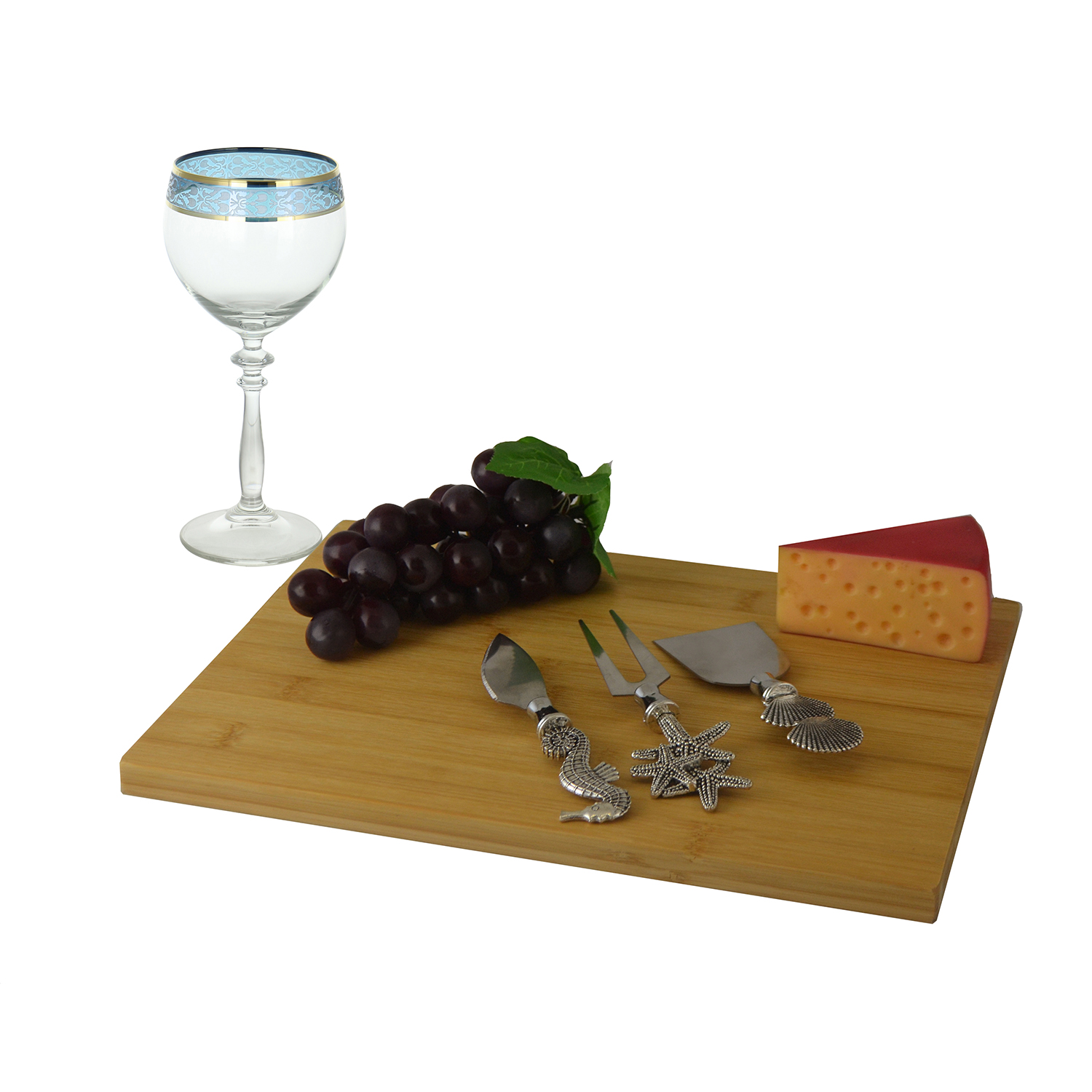 CHEESE BOARD W/ 6 PICKS, SILVER GRAPES