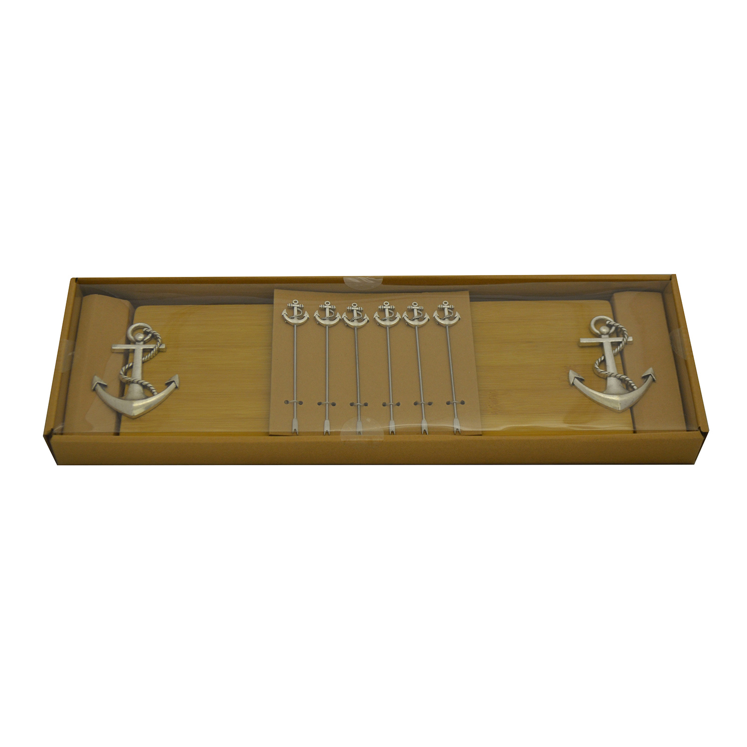 CHEESE BOARD W/ 6 PICKS, SILVER ANCHOR