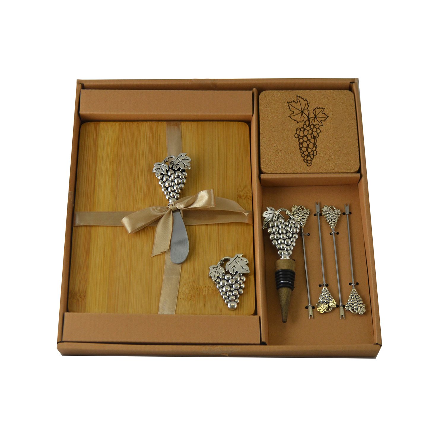 CHEESE BOARD W/ 6 PICKS, SILVER GRAPES quantity