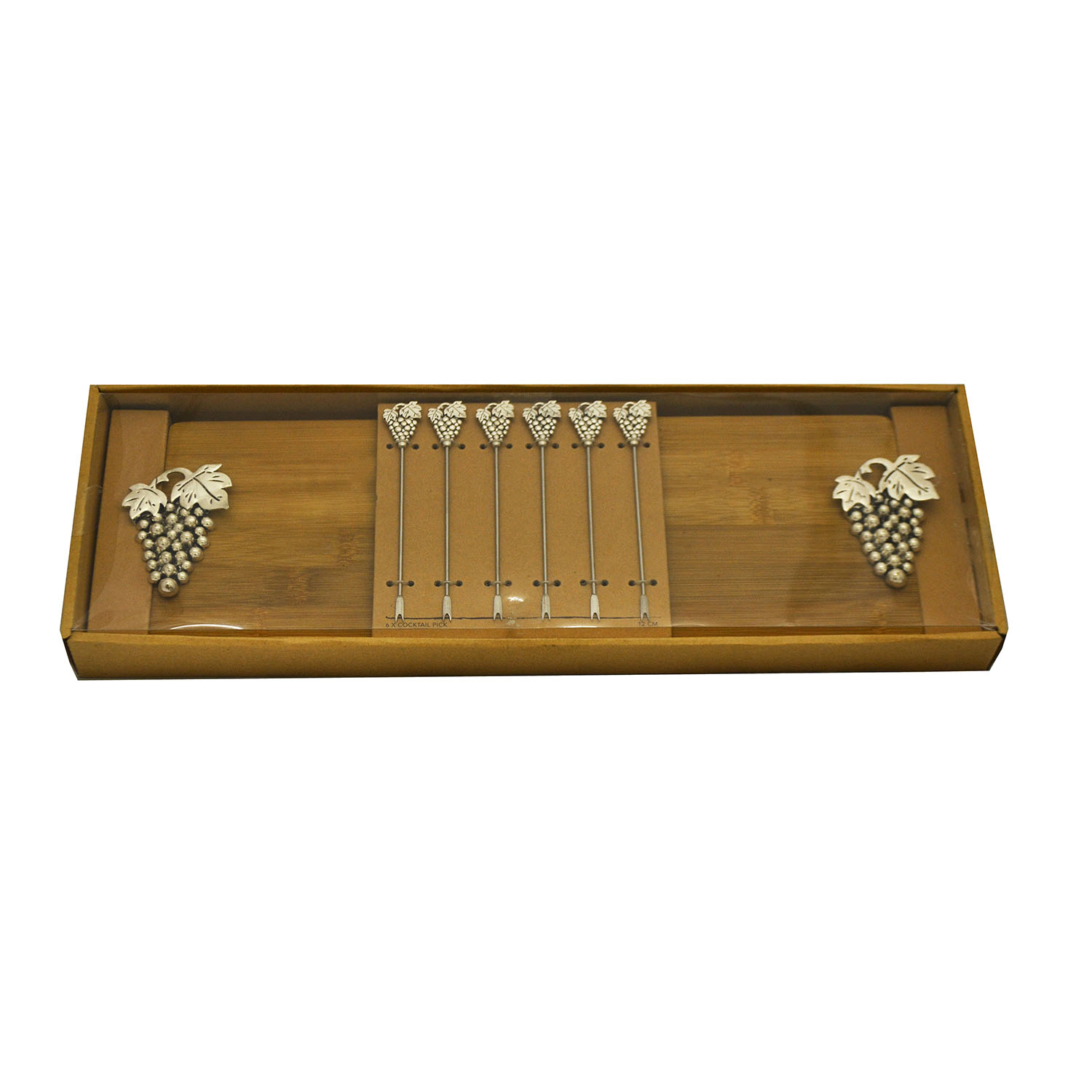 CHEESE BOARD W/ 6 PICKS, SILVER GRAPES quantity