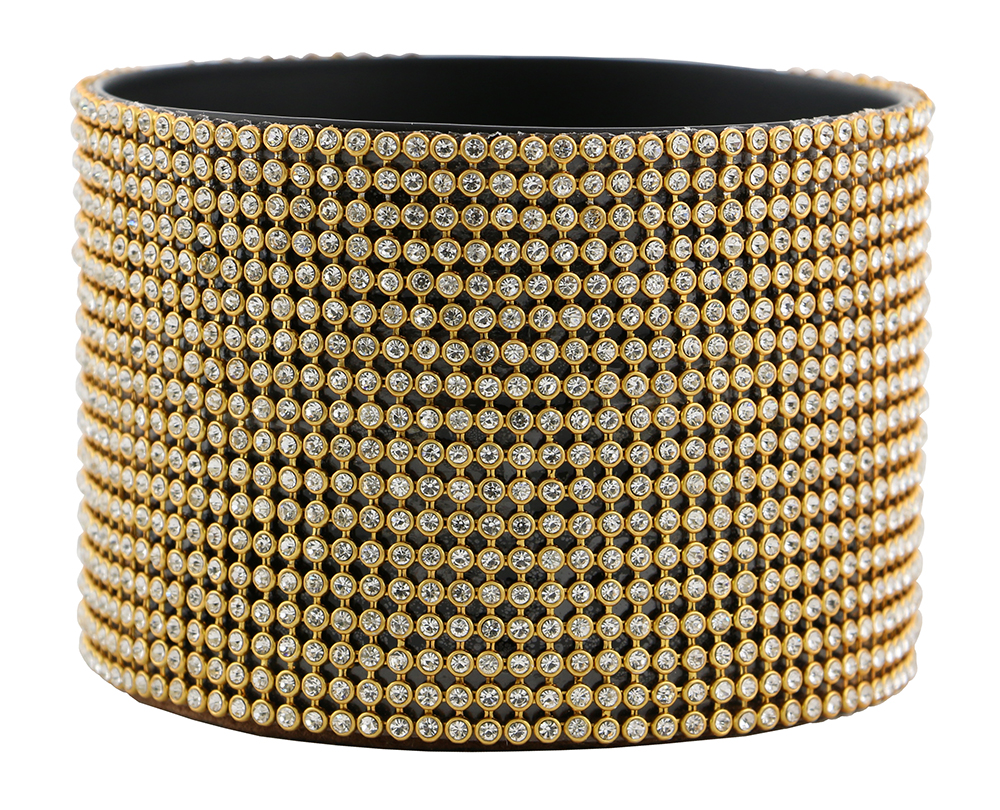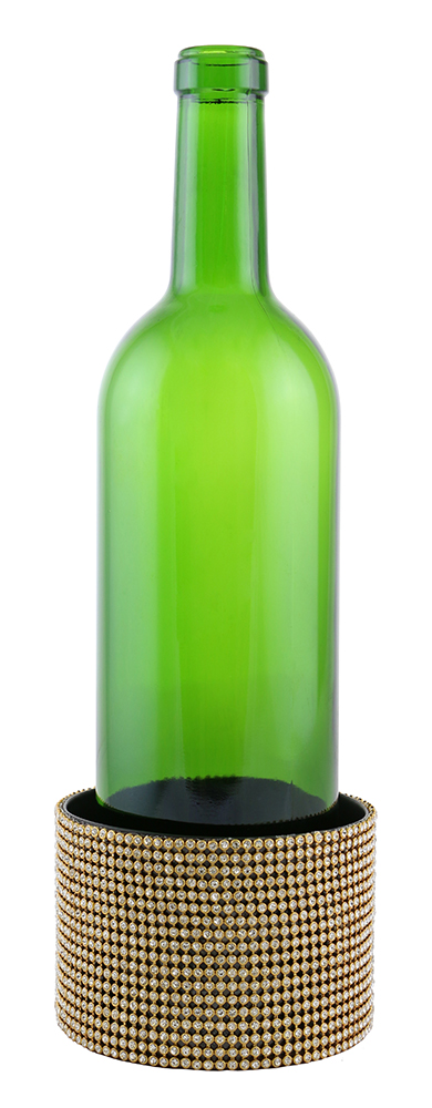 DECORATED WINE COASTER, GOLDEN CRYSTAL PIECES