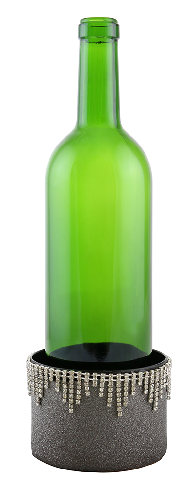 DECORATED WINE COASTER, SILVER WITH CRYSTAL STRANDS quantity