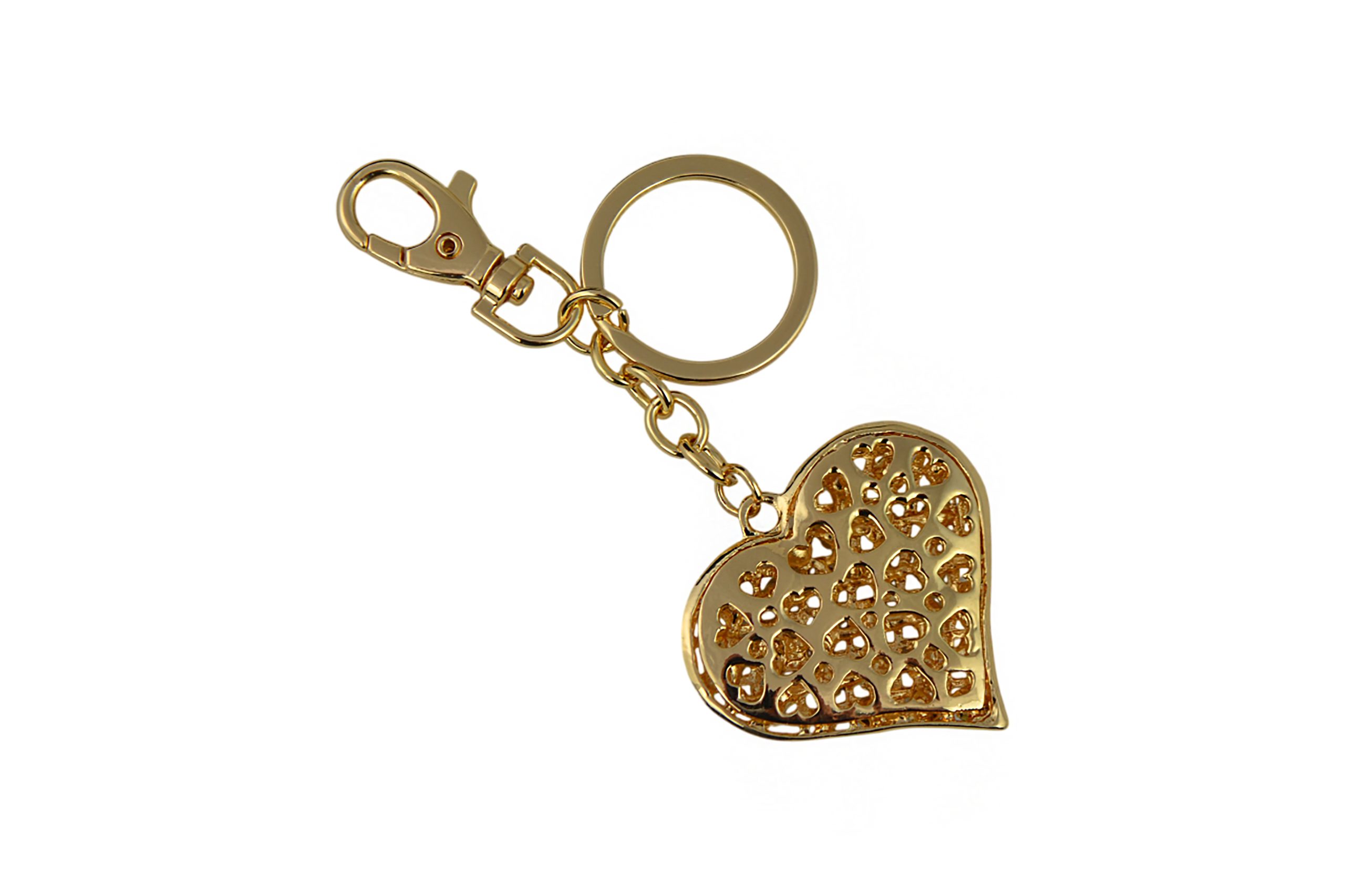 KEYCHAIN, GOLD & CRYSTAL HEART
