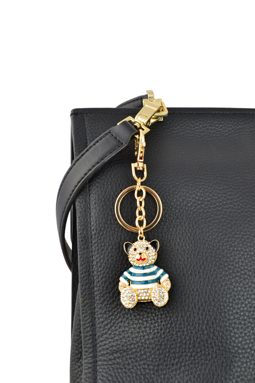 KEYCHAIN, SILVER & CRYSTAL FLEUR DE LIS
