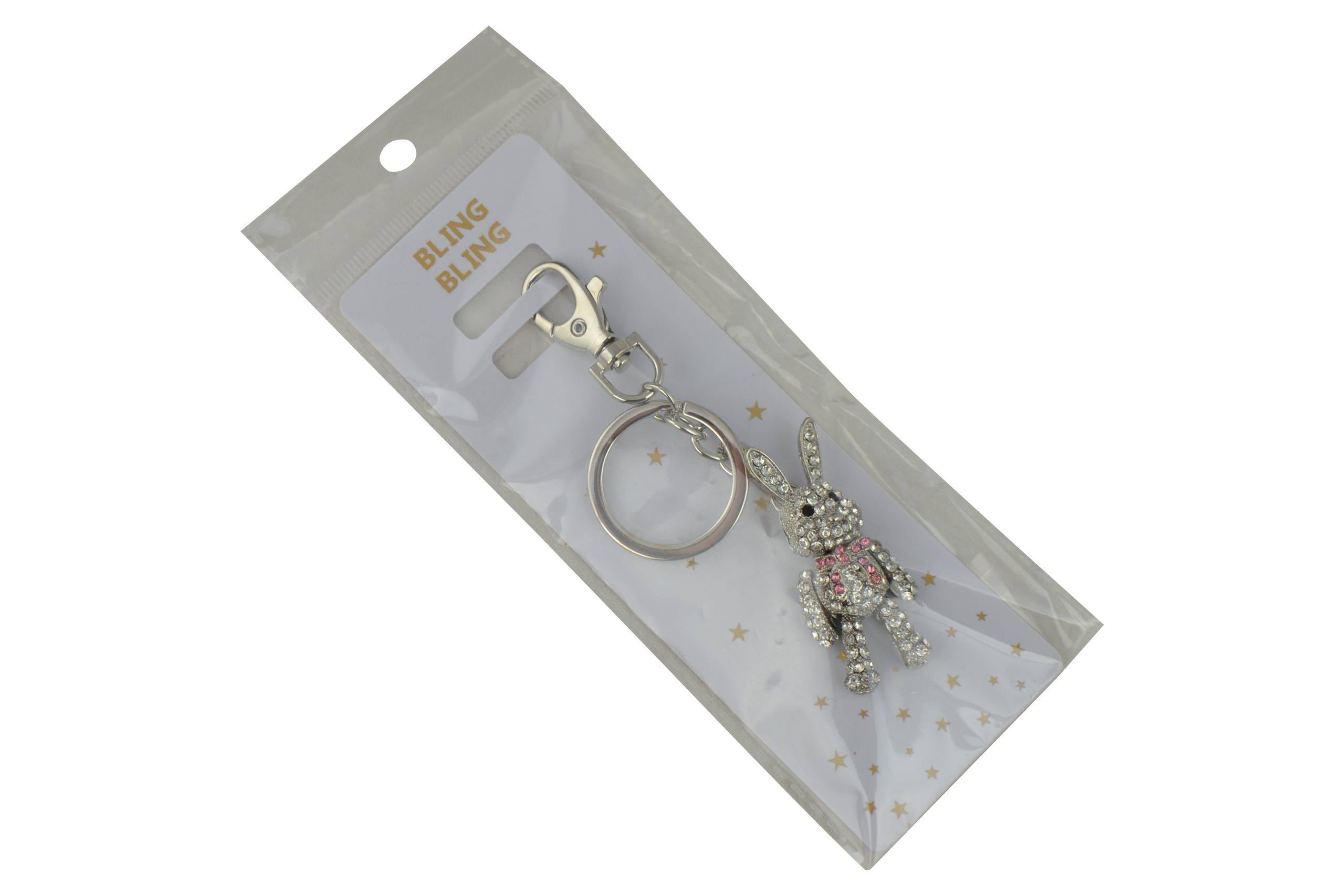 KEYCHAIN, SILVER & PINK RABBIT quantity