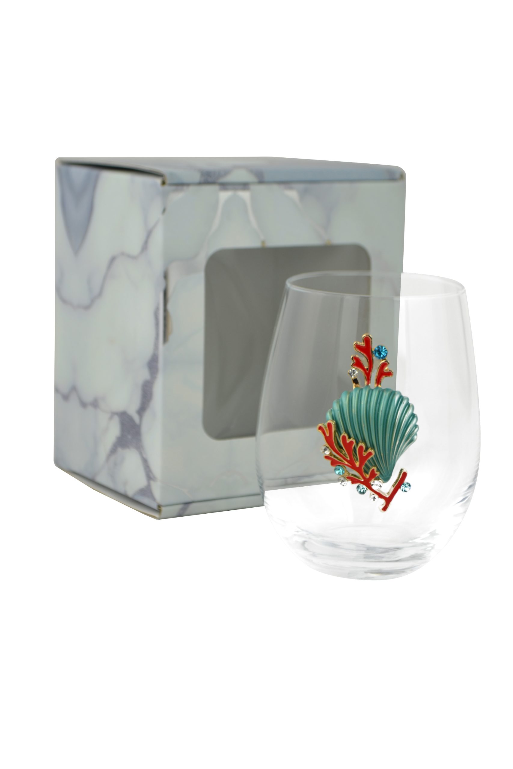 STEMLESS WINE GLASS, SEA SHELL & CORAL