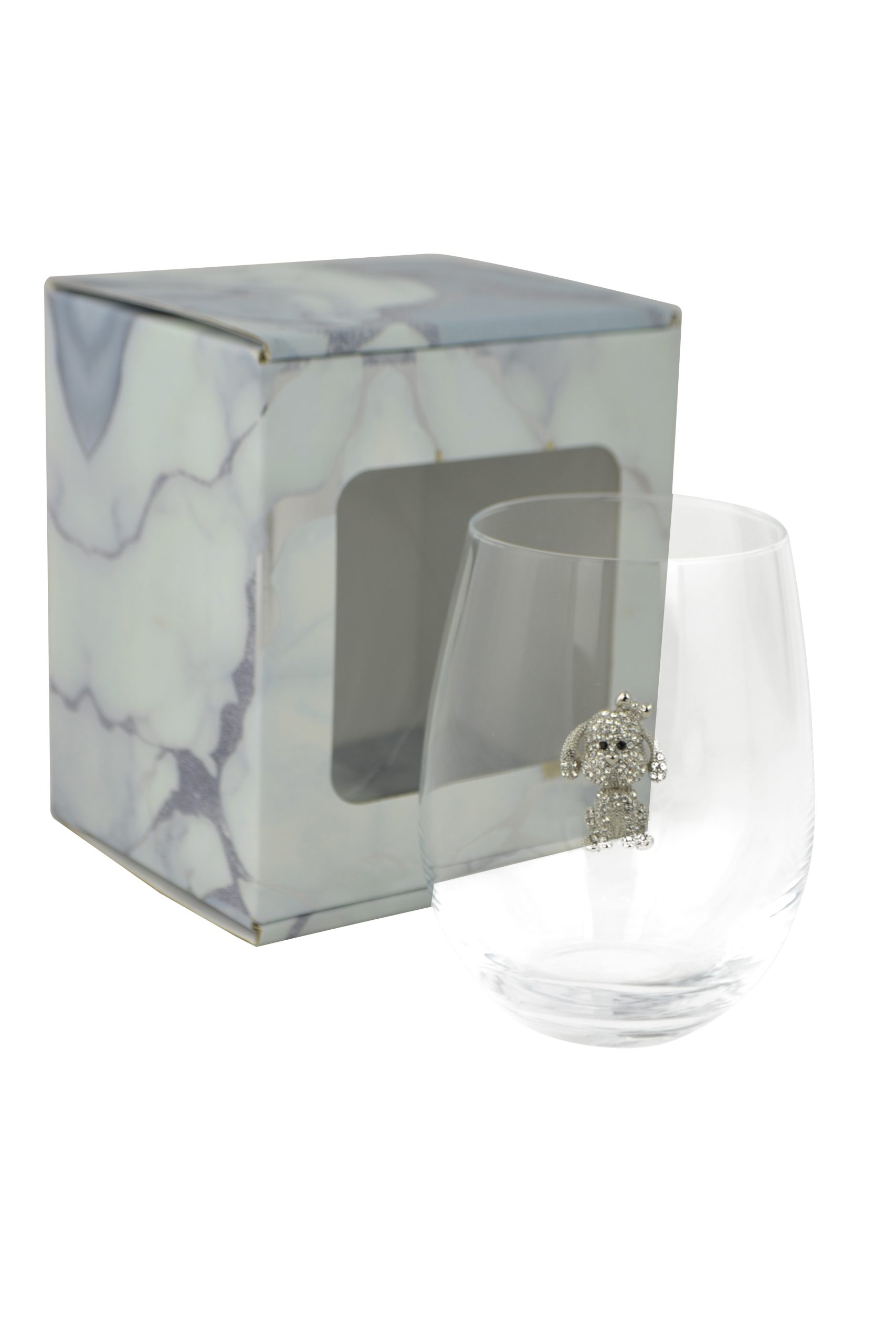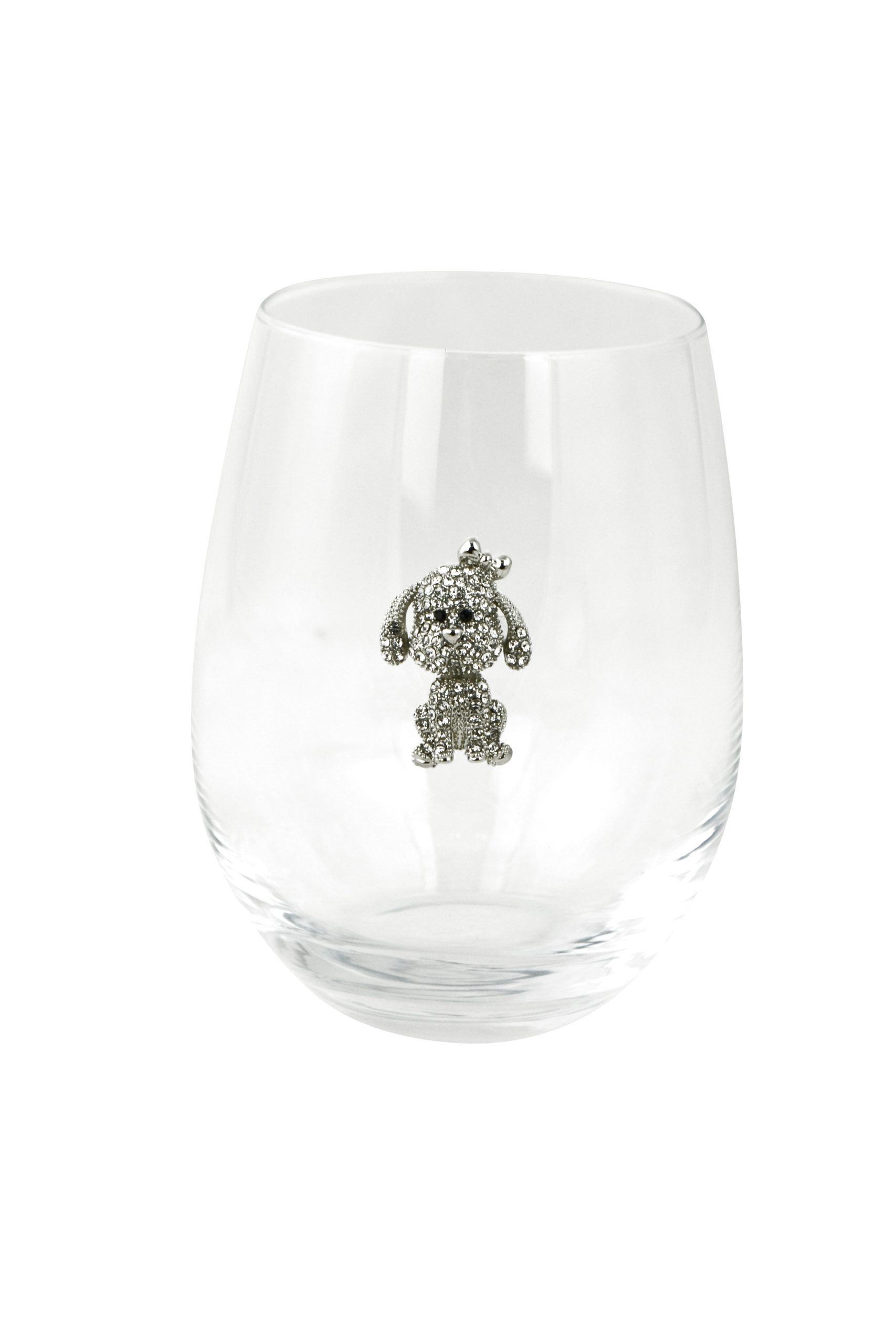 STEMLESS WINE GLASS, SMALL DOG W/ BOW