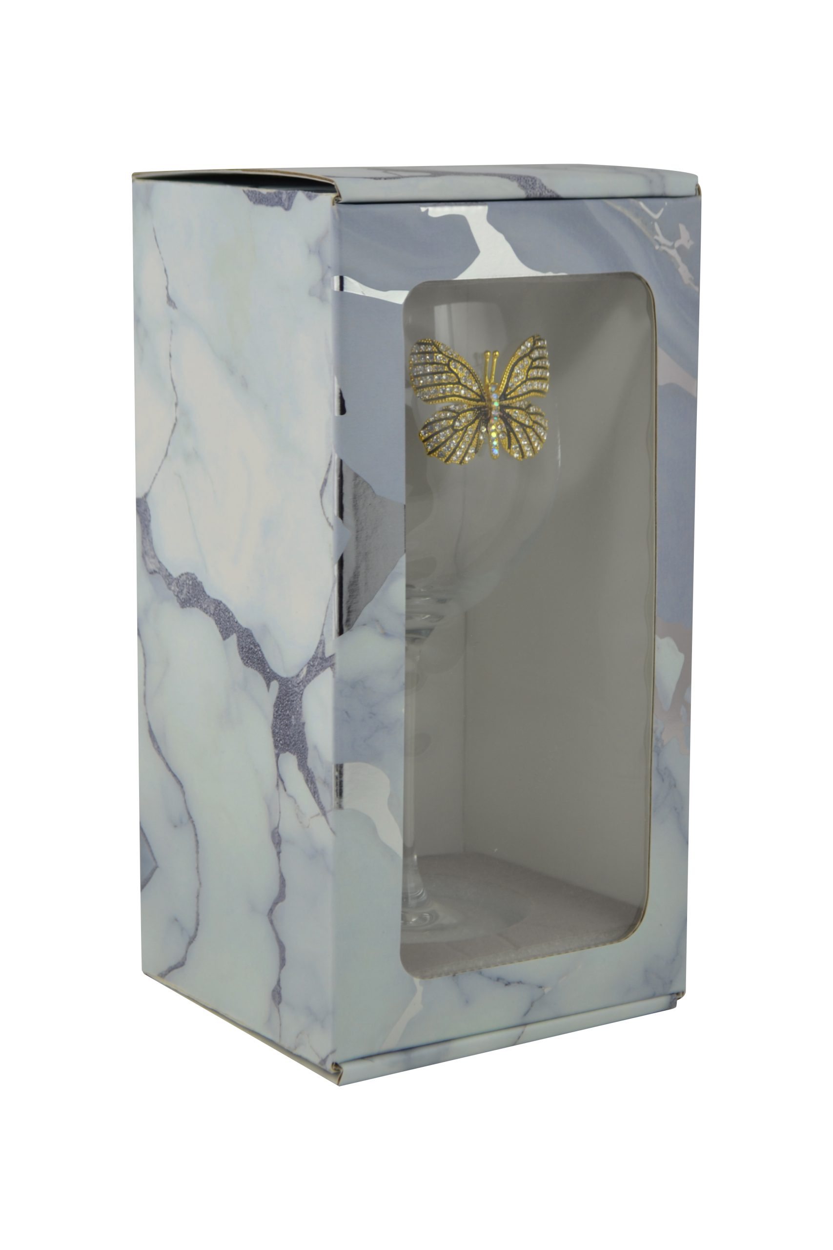 STEMMED WINE GLASS, BLK & GOLD BUTTERFLY quantity