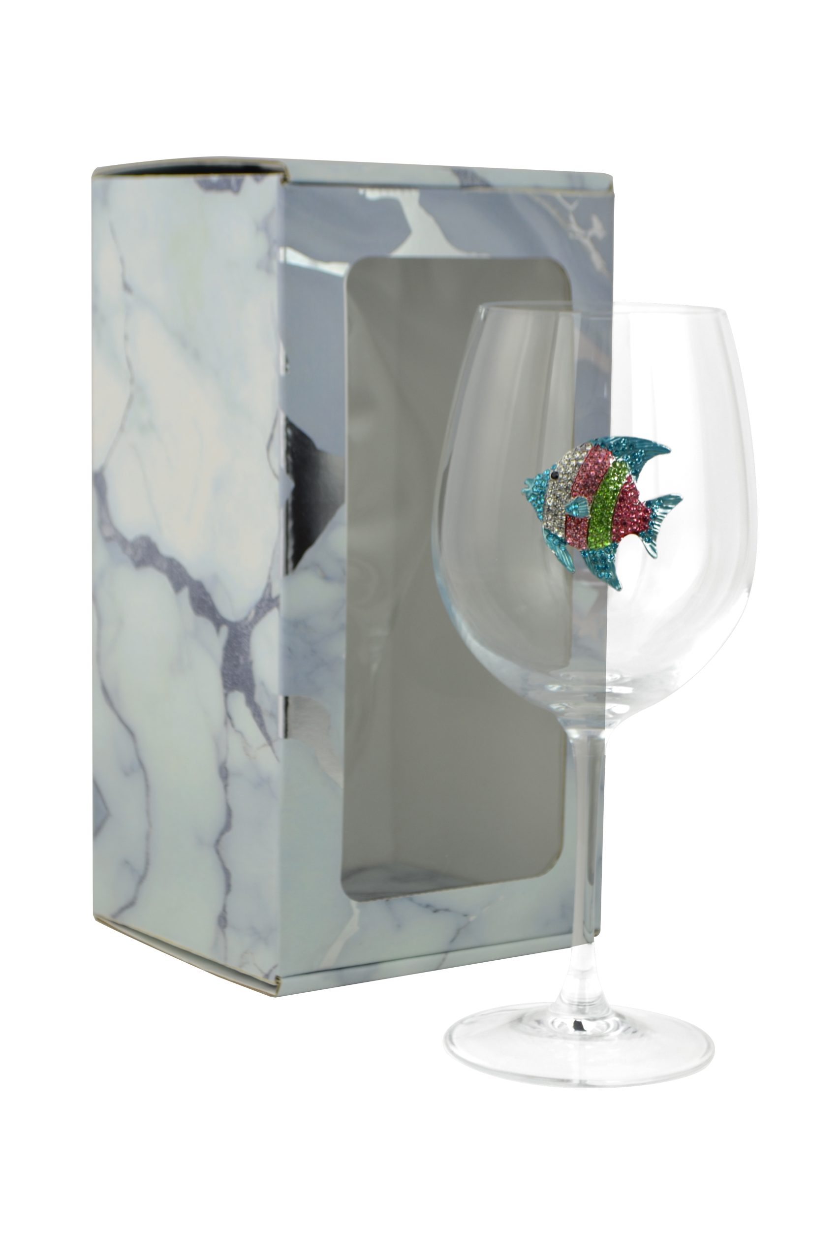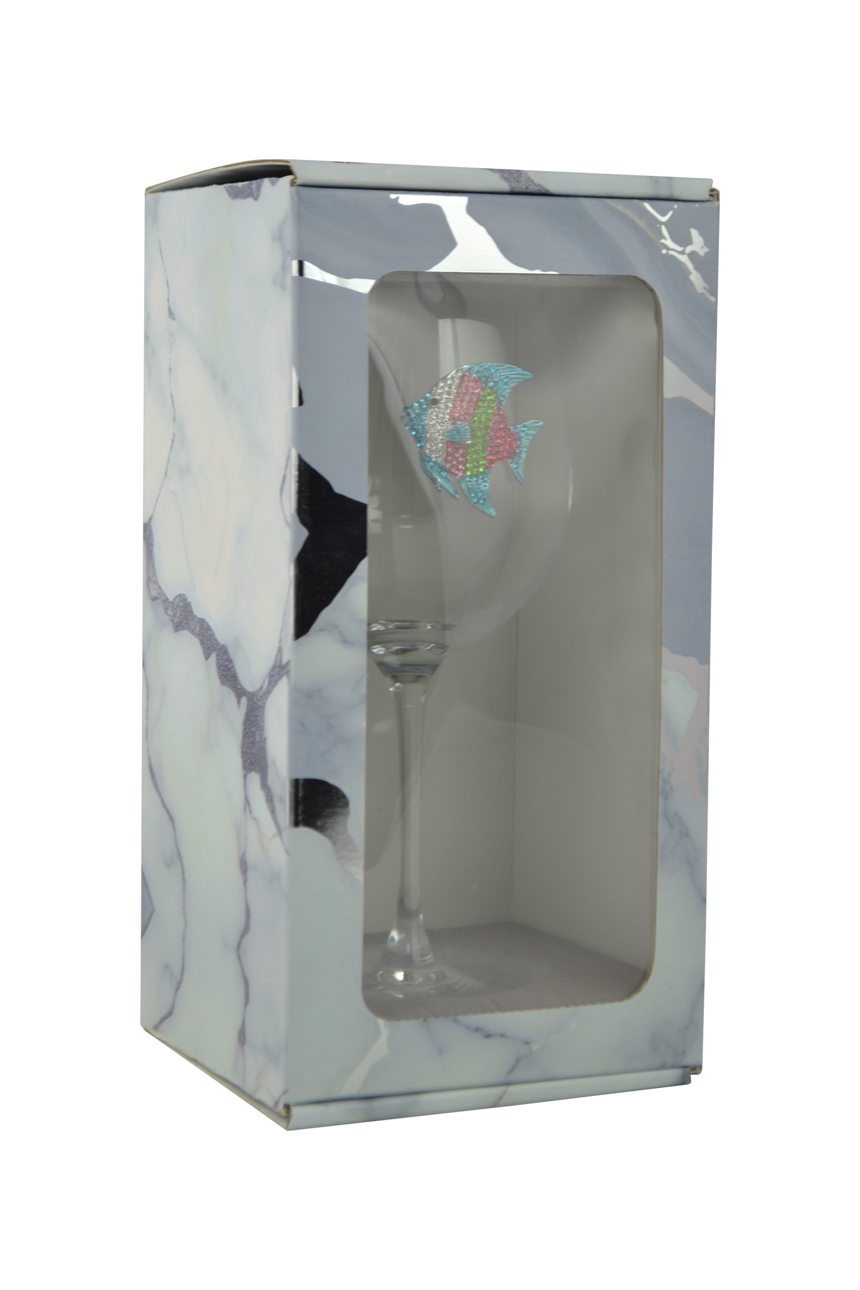 STEMMED WINE GLASS, MULTICOLOR FISH