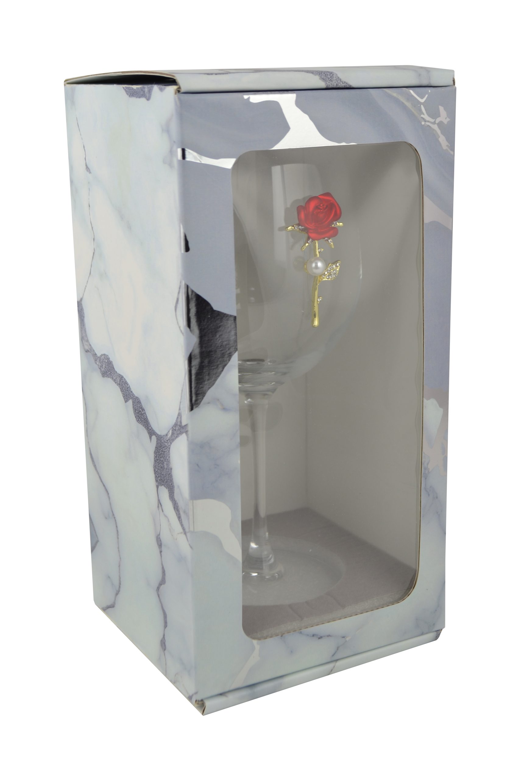 STEMMED WINE GLASS, RED ROSE W/ PEARL