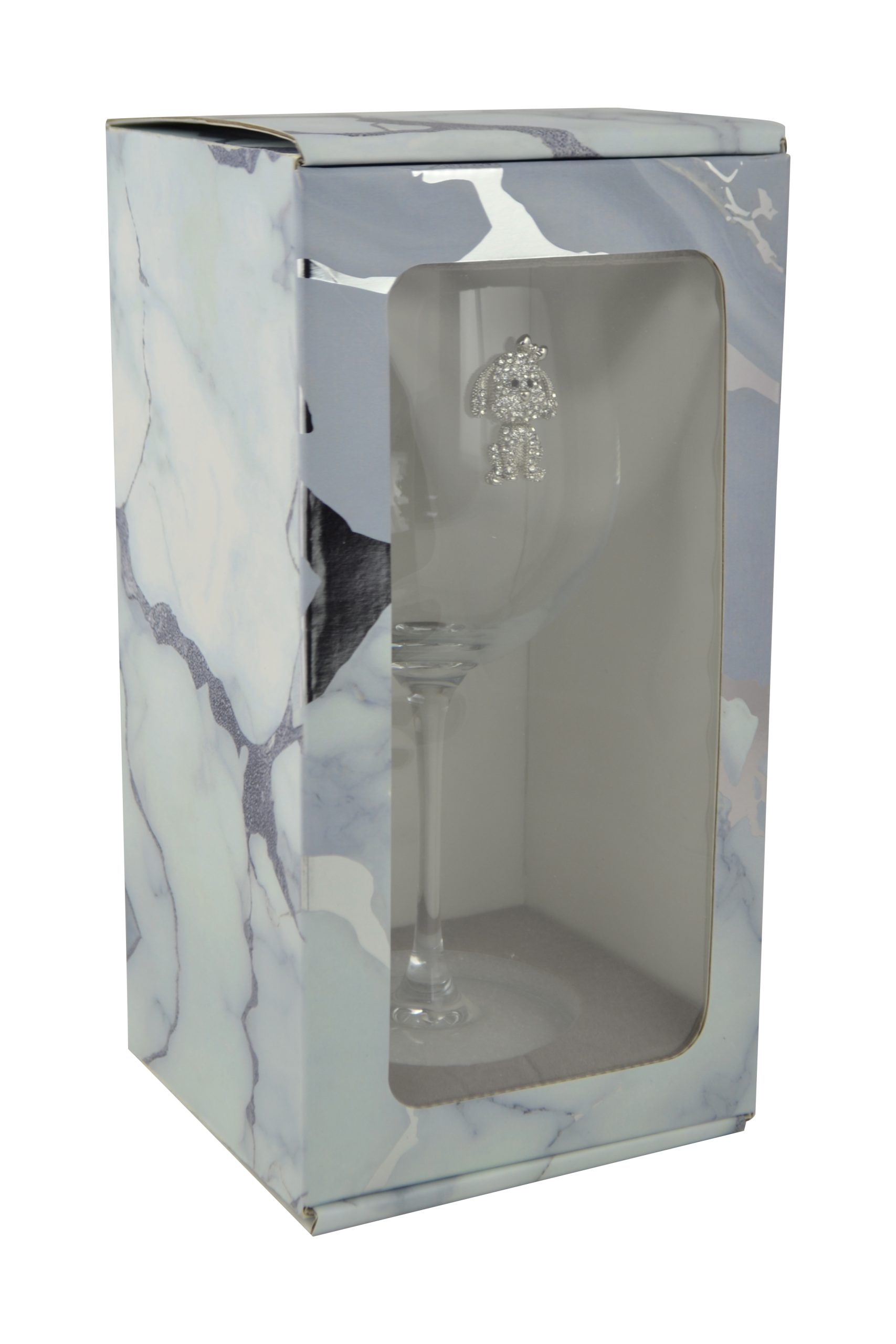 STEMMED WINE GLASS, SMALL DOG W/ BOW