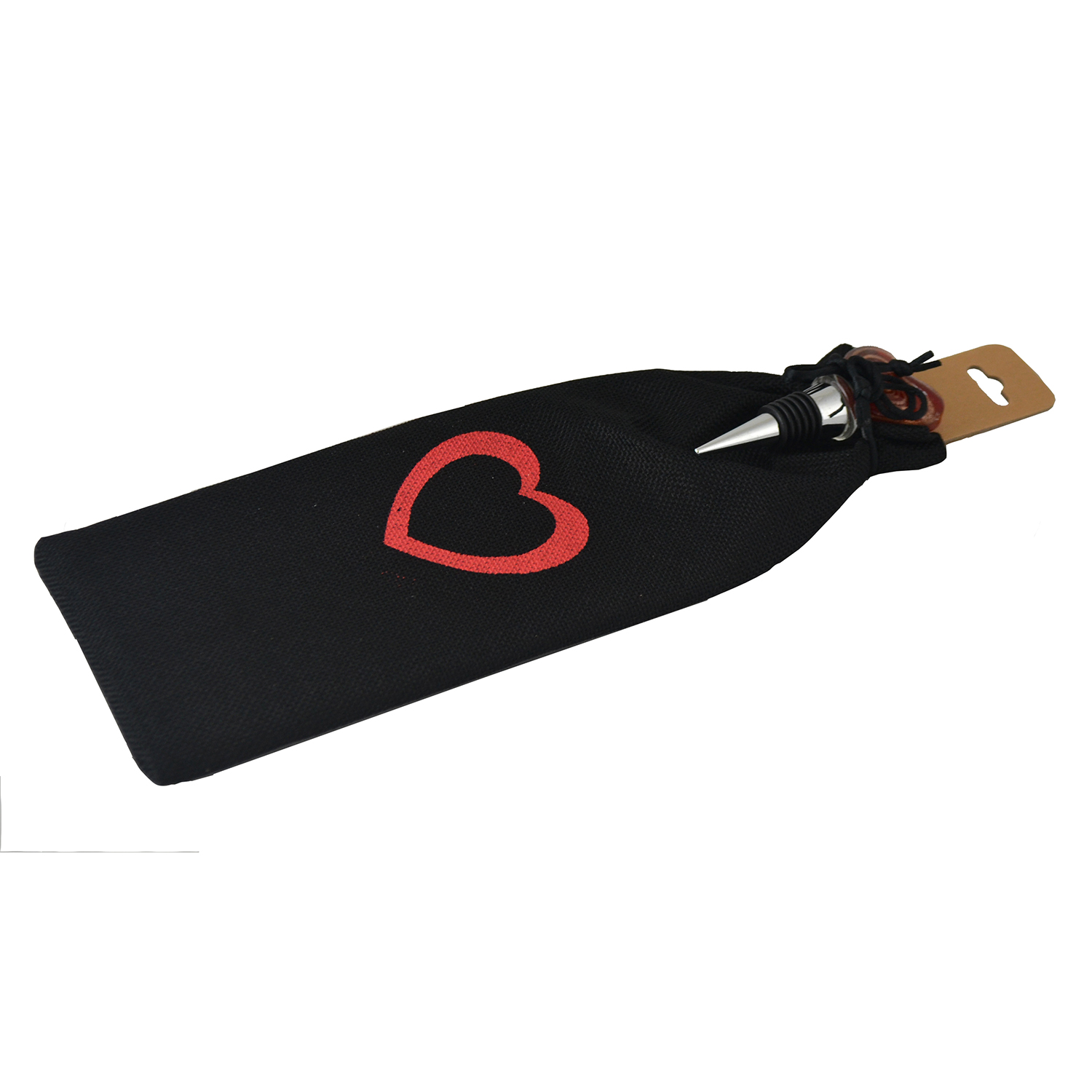 WINE BAG & STOPPER SET, RED HEART